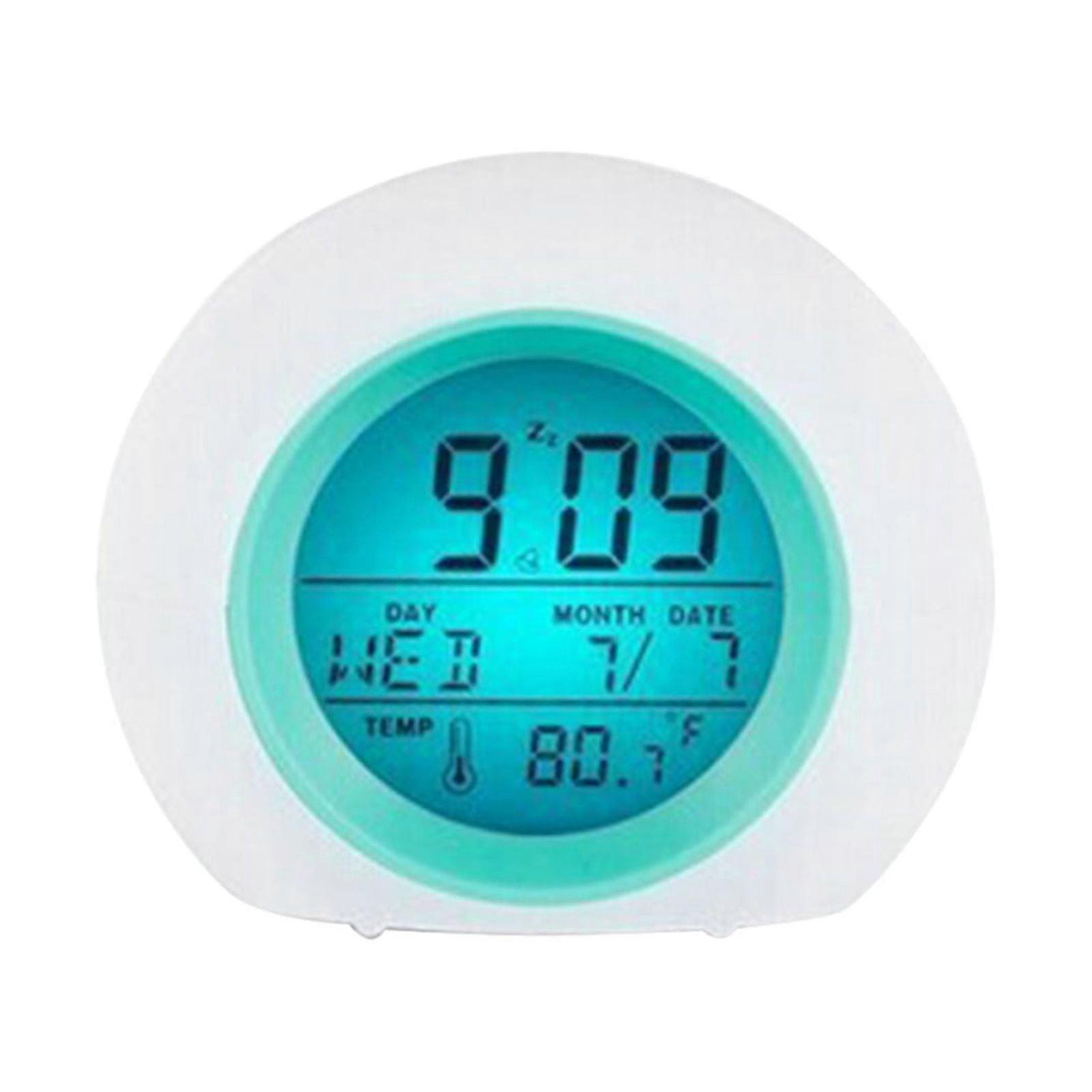 Kids Alarm Clock Cute Digital Clock With Temperature Date Change 7 Colors OK To Wake Boys Girls Get Up Clock For Bedroom Features: Colors Changeable Night Light - Dimmable to create the perfect atmosphere for the bedroom, The wonderful backlighting makes the children's eyes soft and comfortable, and makes the clock a night light the bed. is great for kids and teens. The light features seven modes including a slow gradient and a nightlight function. Snooze Function-A child sleep trainer with a cute appearance, designed for children, allows children to distinguish when it is time to go to bed and when to get up. It is very suitable as a gift for boys and girls. Product Description: 1* Clock(Battery not included) Product Name:Circular Colorful Alarm Clock Colors:White Commodity materials:Plastic Package Includes:1pc alarm clock We sell a wide range of home products that meet most everyday household needs. Welcome to shop and inquire.