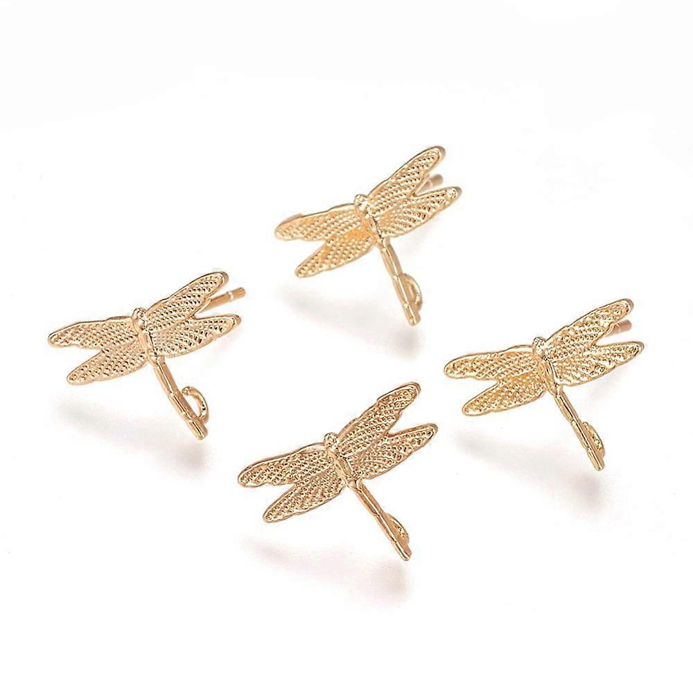 Brass Stud Earring Findings with Loop Nickel Free Real 18K Gold Plated Dragonfly 12x16mm Hole: 1mm Pin: 0.8mm