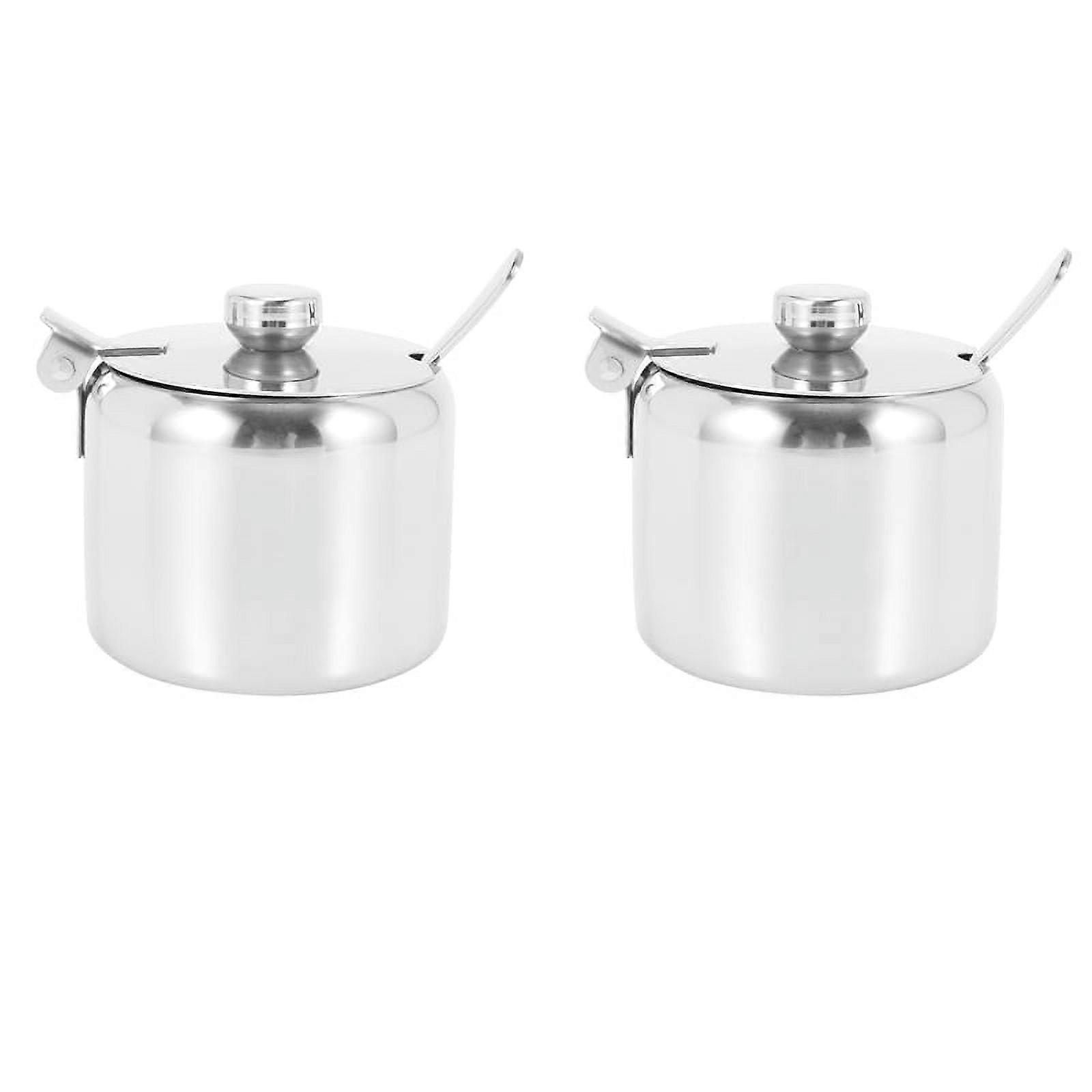 2X Stainless Steel with Lid and Spoon Sugar Bowl Seasoning Jar Seasoning Jar Tableware Spice Container