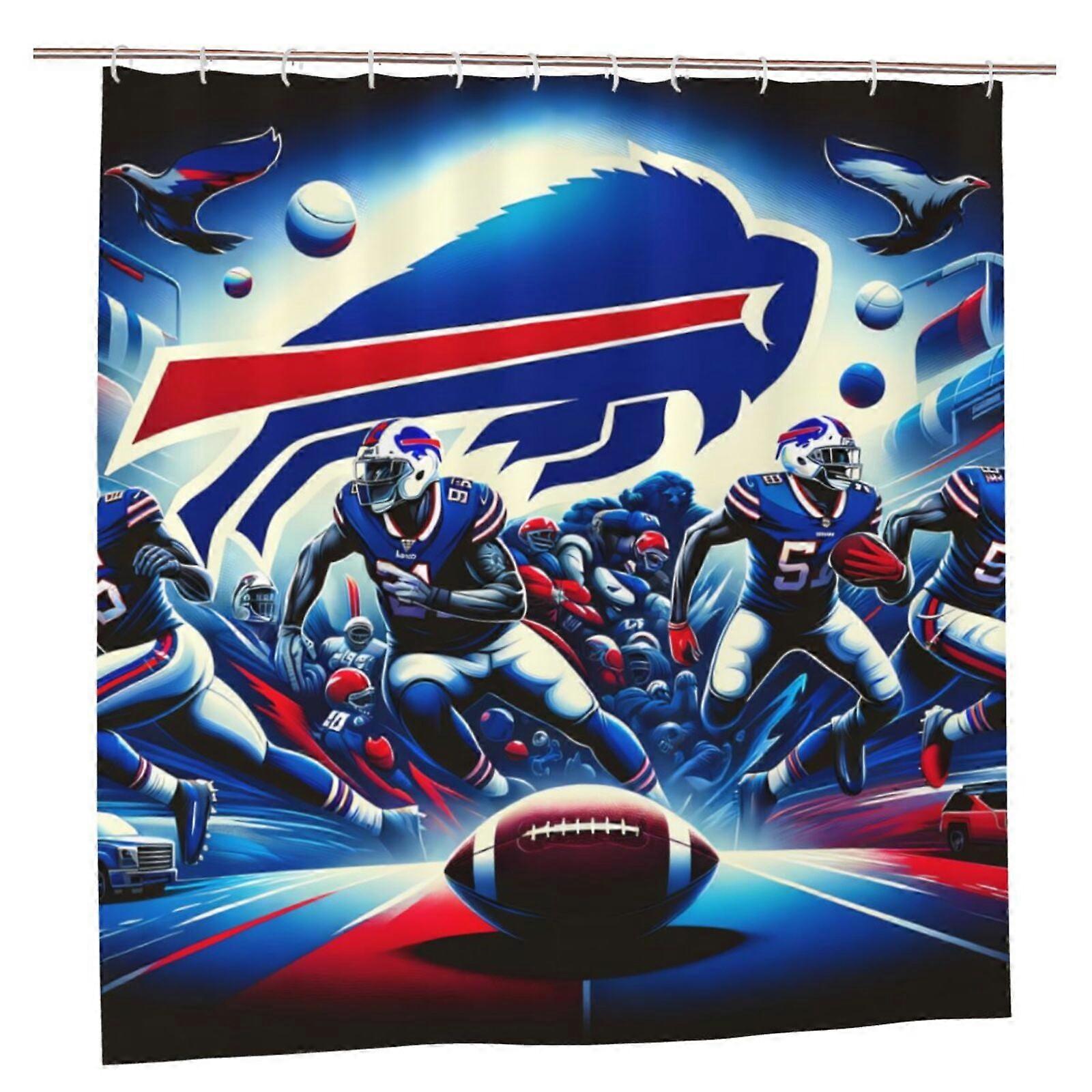 Bills Waterproof Quick-Drying Shower Curtain 72x72in with Hooks, Football Decor, Plastic Bathroom Curtain Set