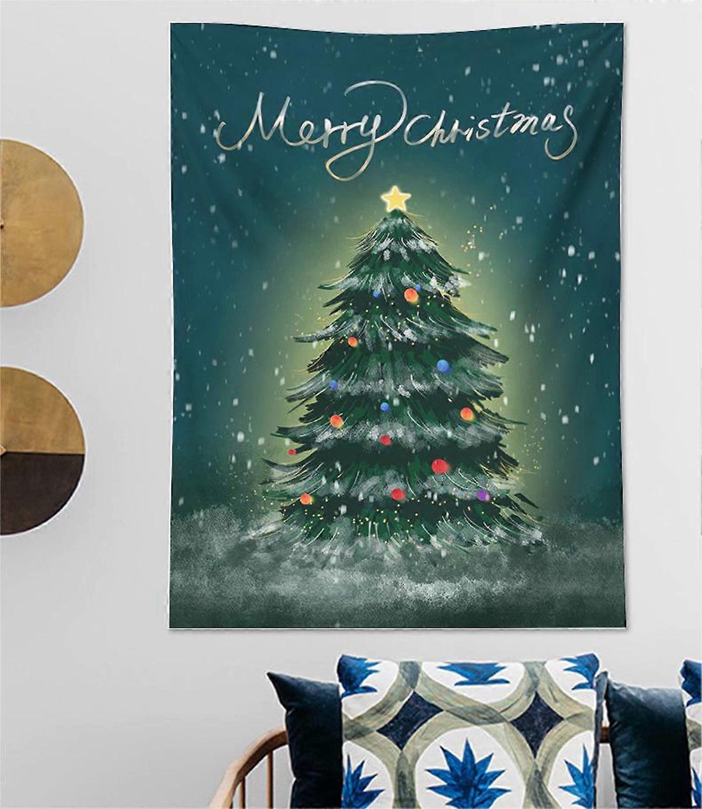 Herrnalise Christmas Tapestry, Shiny Xmas Green Tree Wall Art for Living Room Bedroom, 16x13 Inches Decor