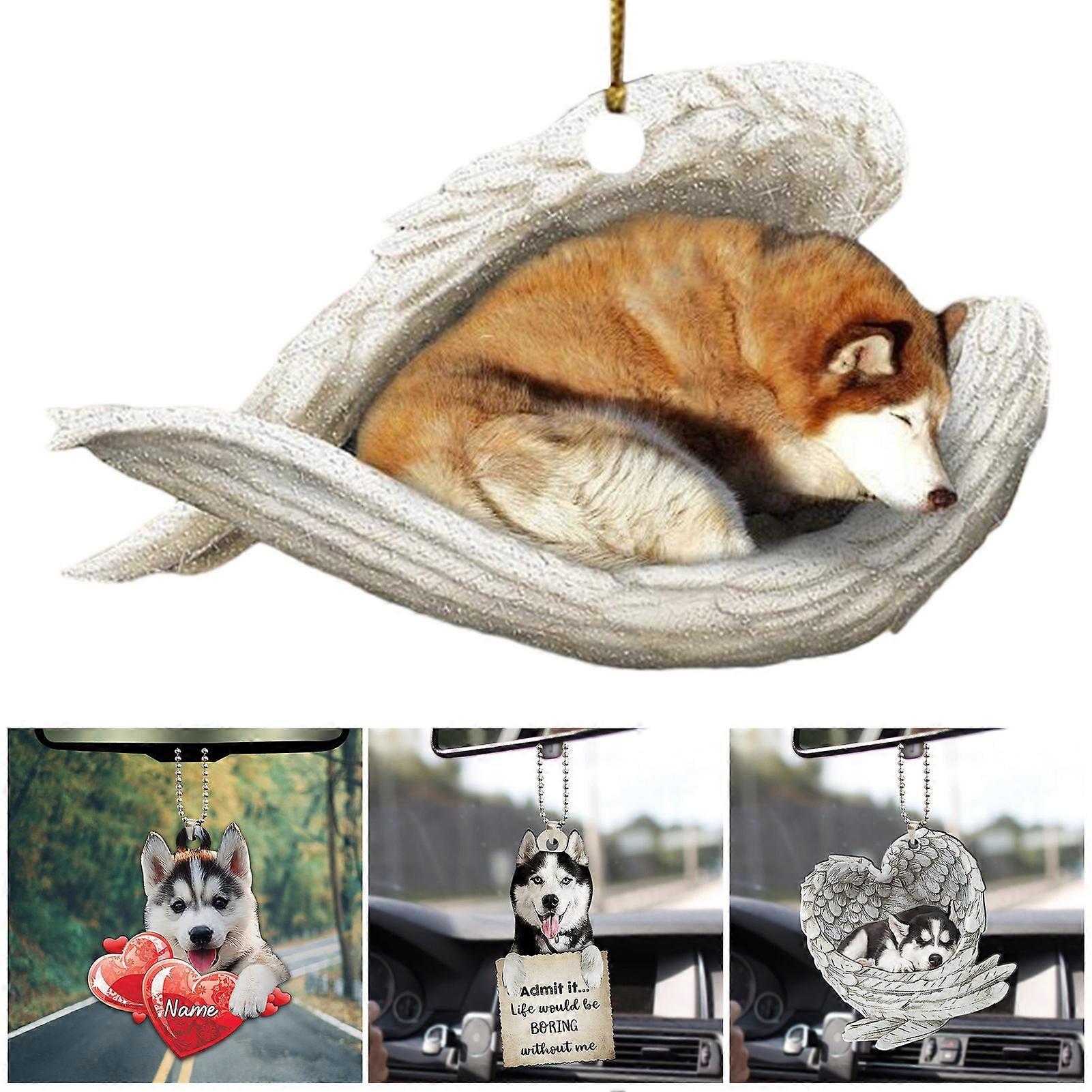 SUSUchens Love Dog Angel Wings Acrylic Car Pendant Valentine's Day Decoration Letter Printed with Hanging Chain Car Pendant Style A