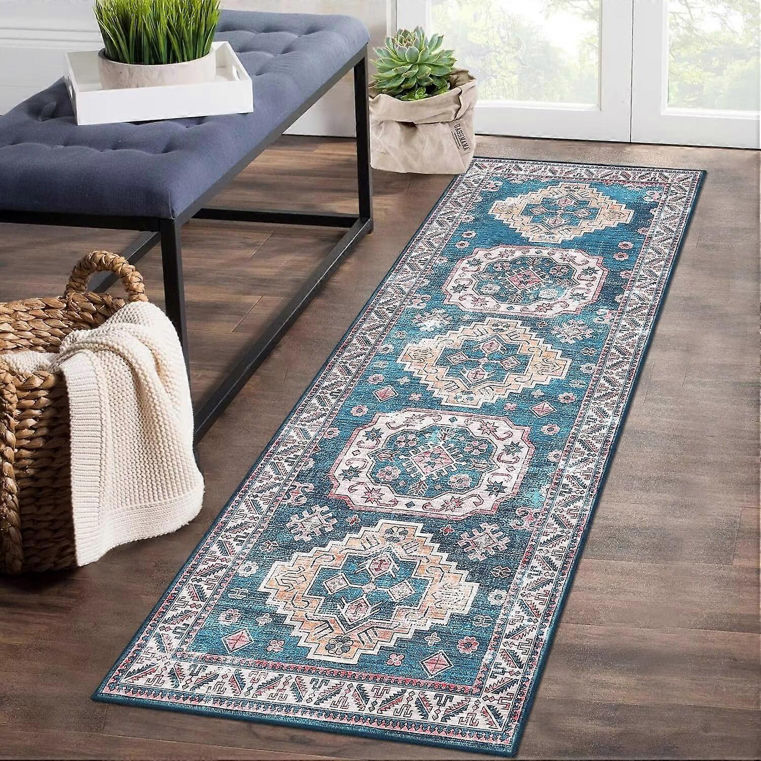 Our machine-washable rug is low-pile, lightweight, and stain-resistant, making it easy to clean and care for. The non-slip backing prevents sliding and scratches, making it perfect for high-traffic areas with children or pets. The low pile allows for seamless placement under furniture and doesn't obstruct doorways. The vintage Boho pattern creates a peaceful atmosphere in your home, making it perfect for any room. MACHINE WASHABLE: The low pile and lightweight rug is stain resistant, simply toss in the machine for a quick wash, and line dry or dry on an air-only cycle without heat. Your machine washable area rug is so easy to clean and care for NON-SLIP: Our non-slip rug is made of high-quality TPR backing, keeps the rug securely in place, and is effective at preventing the rug from sliding on the floor while protecting the floor from scratches made by heels and compatible with sharp objects, for children playing on the floor is a great choice, perfect fit for high traffic areas LOW PILE: Low pile area rugs are made of premium polyester fibers, allow for seamless placement underneath furniture, and will not obstruct doorways, they are perfect for the living room, dining room, entry, bedroom, or home office FAMILY AND PET FRIENDLY: Keeping a rug clean can feel like a battle; Our new collection of stain-resistant rugs are easy to clean, simply toss in the machine, and are perfect pet and family compatible STYLISH: Each rug prints with a vintage Boho pattern in modern design, to create a peaceful atmosphere for your home. This purposefully Contemporary-inspired rug embodies a global look that never goes out of style