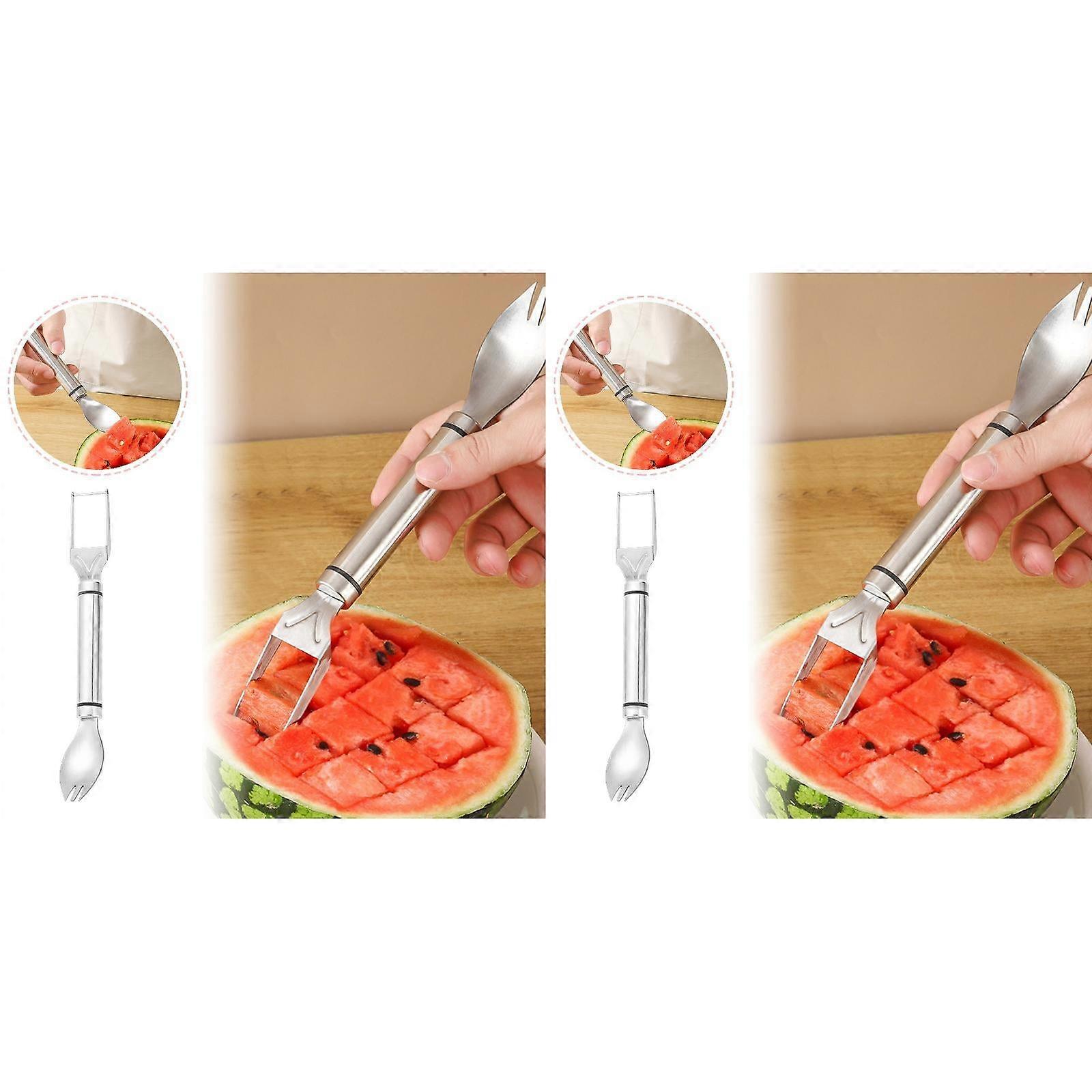 Stainless Steel Fruit Slicing Spoon Watermelon Cutting Tool Fruit Fork Fruit Flesh Digging Spoon Purpose Spoon Fork *2PCS