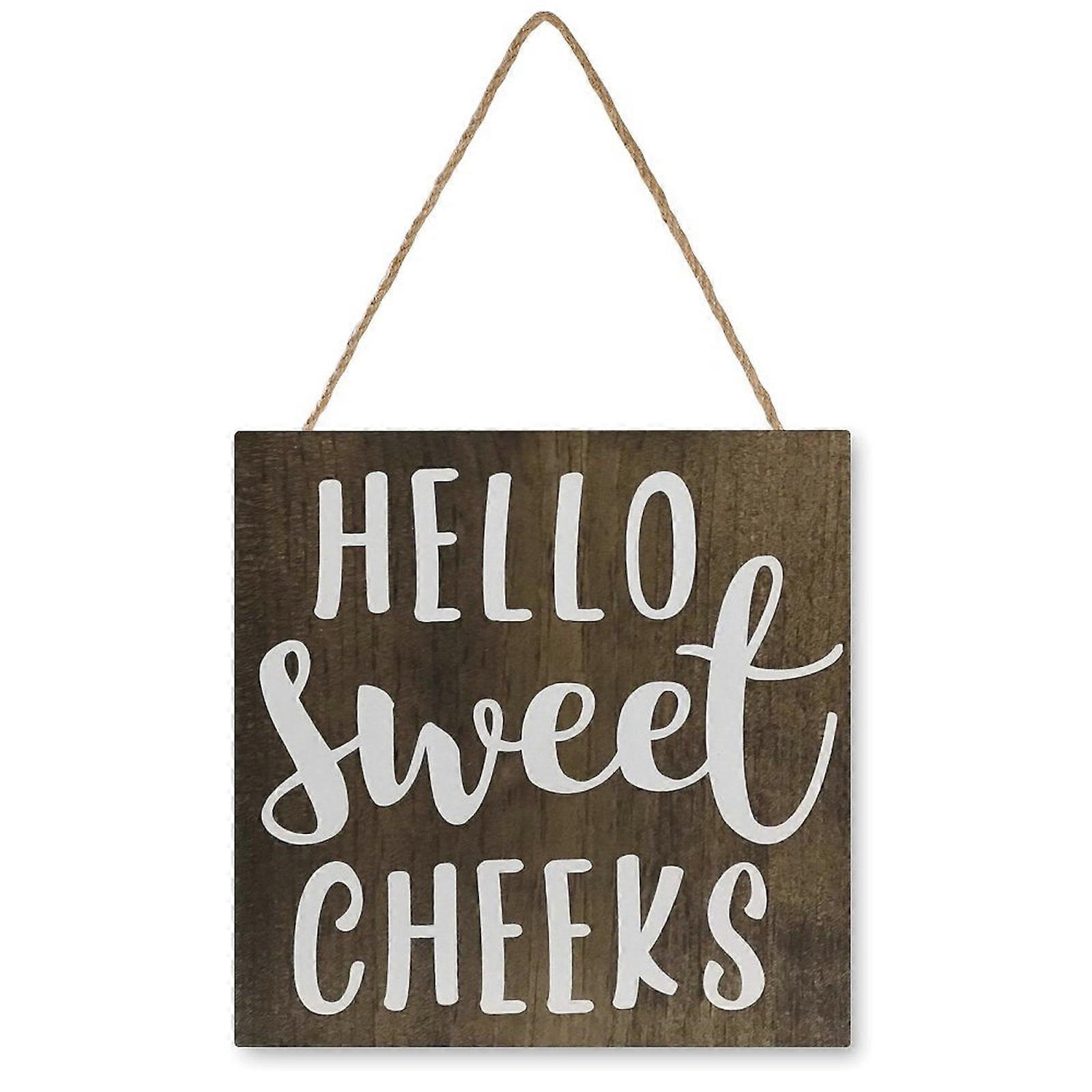Funny Wooden Sign - Hello Sweet Cheeks (2), 12x12 inch, Farmhouse Hanging Signs, Inspirational Quotes, Home Decorative Plaques