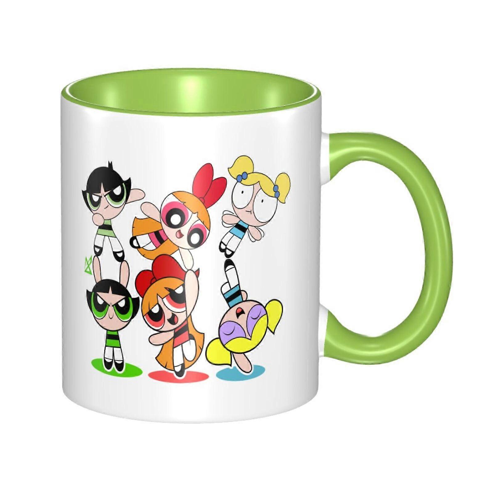 Cute Powerpuff Girls Ceramic Mug 11 Oz Green, Compatible with Home Office Use, Unique Design Coffee Tea Cup for Women Men, Christmas Holiday Gift