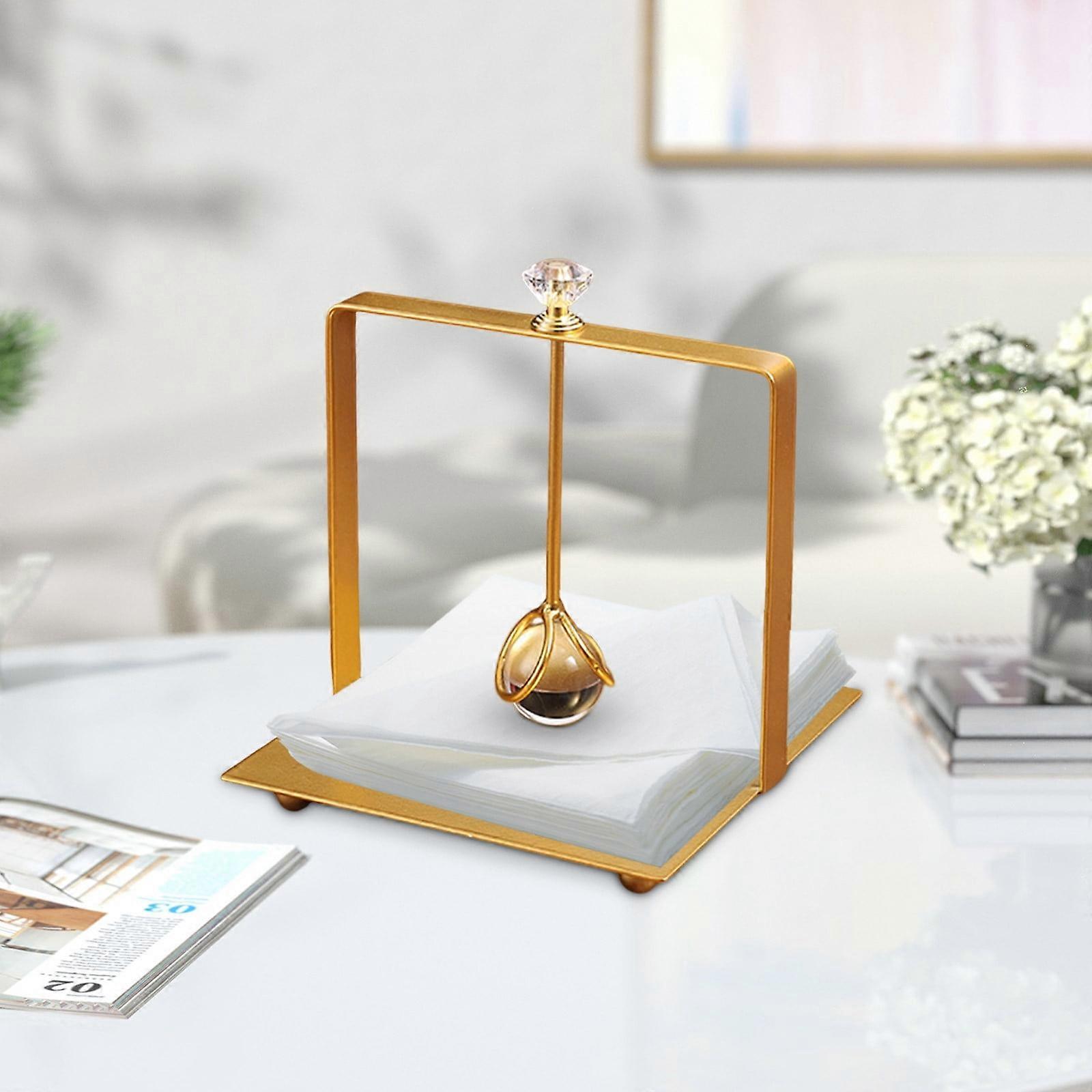 Wrought Iron Paper Towel Stand with Crystal Ball, Hotel Countertop Press Holder - Compatible with Standard Rolls, Home Supplies Clearance