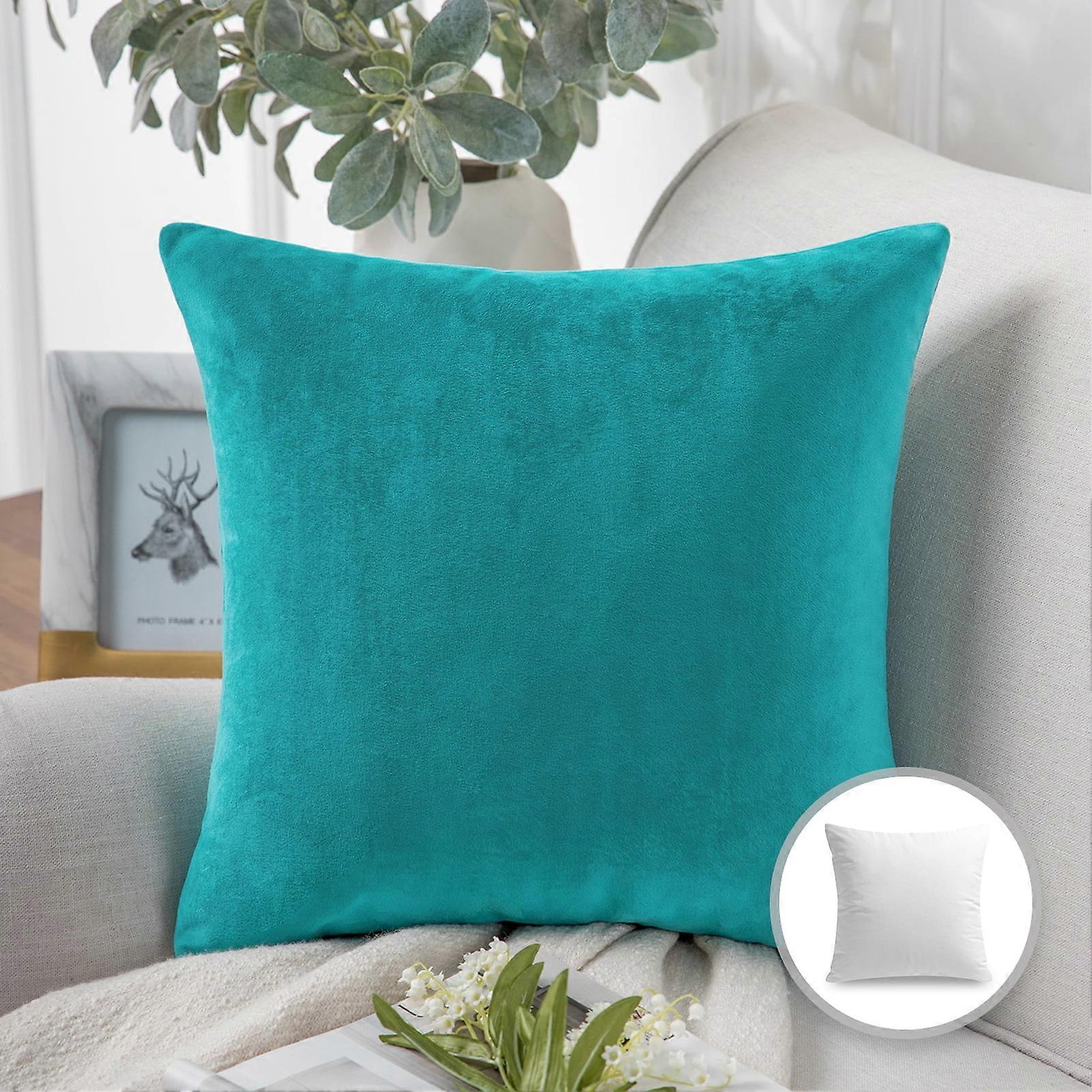 Phantoscope Soft Silky Velvet Series Decorative Throw Pillow, 18" x 18", Lake Blue, 1 Pack