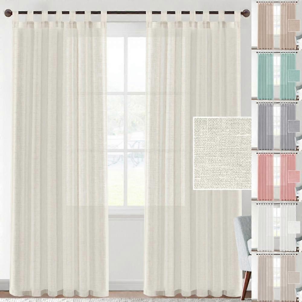 Linen Sheer White Curtains 72 Inch Length - Semi-Sheer Tab Top Curtain Sets for Living Room/Bedroom Privacy and Sunlight Filtering, 2 Panels 52*72in