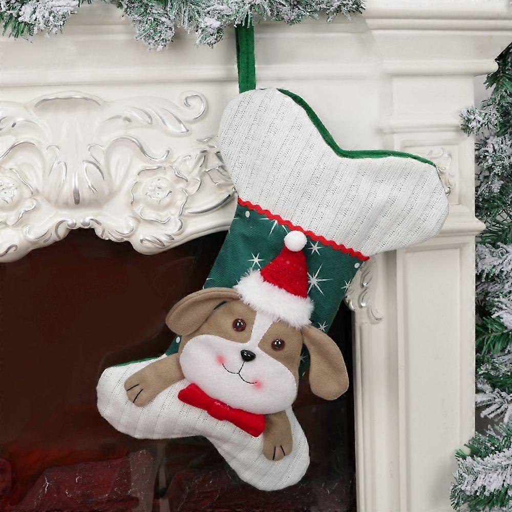 Creative Cartoon Cat Dog Pattern Bone Christmas Stockings Christmas Tree Ornament Holiday Decorations