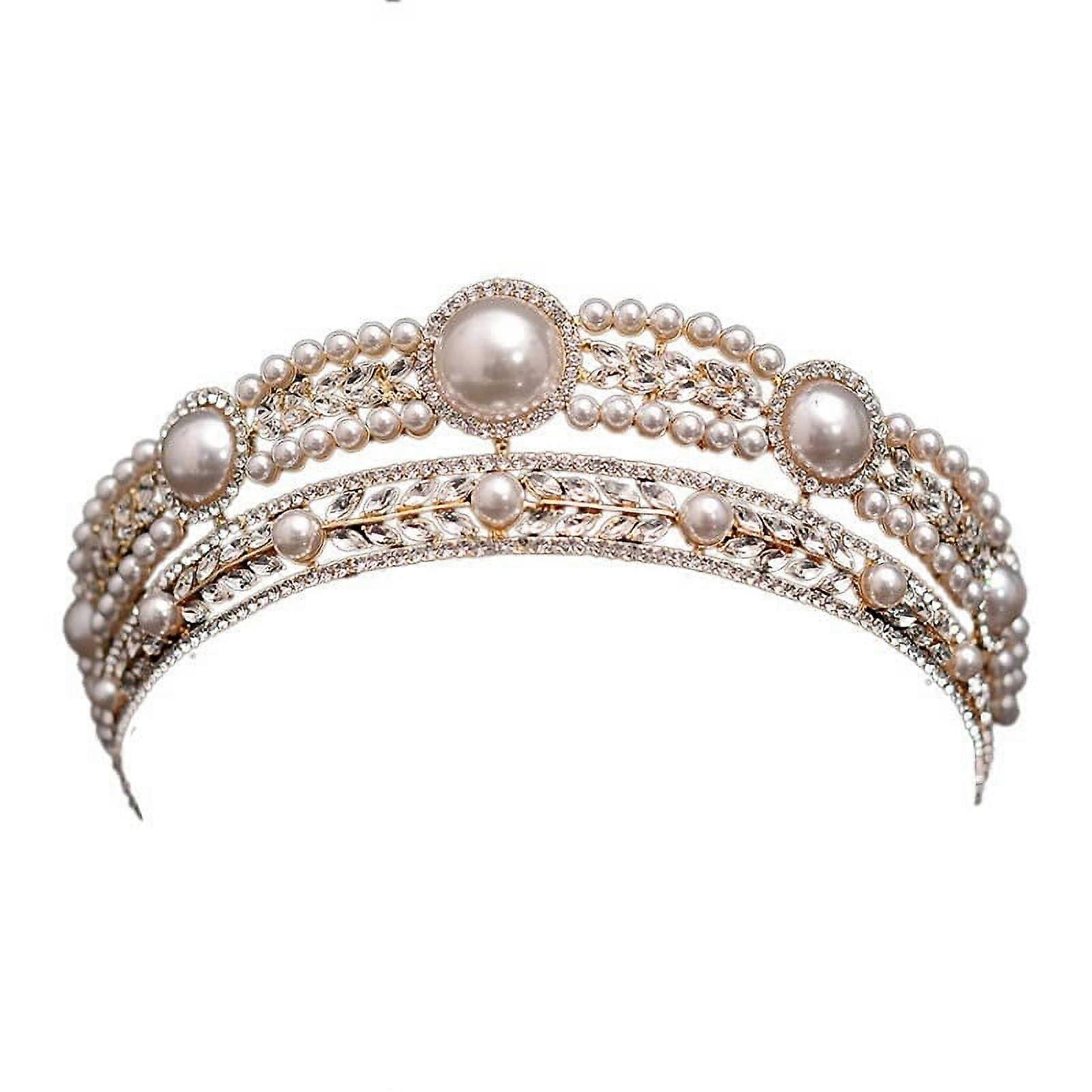 Pearl Crowns for Women & brides-wedding bridal Tiara Crystal Queen Crown & pearly Princess Birthday & prom party hair One Size