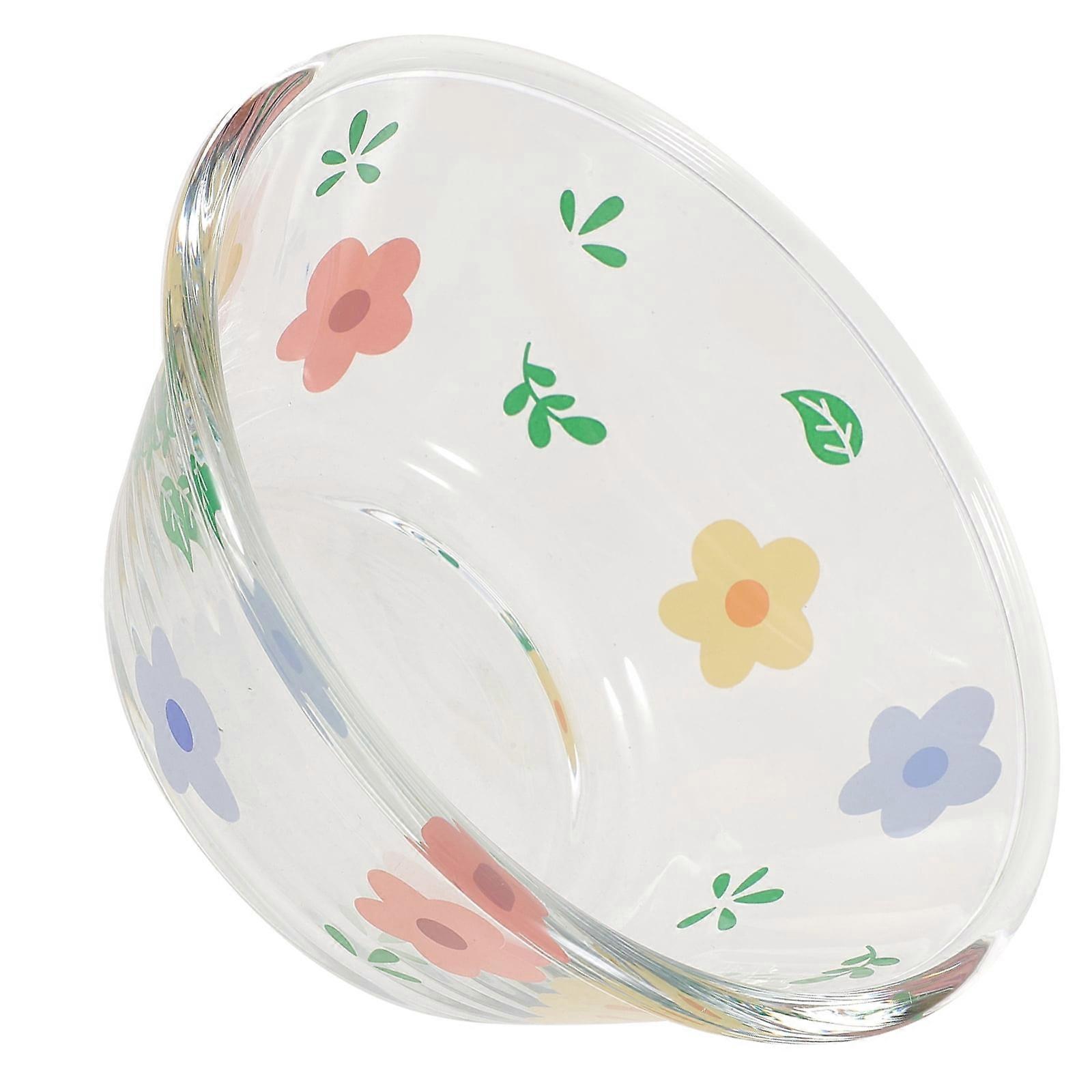 Clear Glass Salad Bowl Serving Bowls for Fruit Salad Round Dessert Pasta Bowl with Flower Pattern