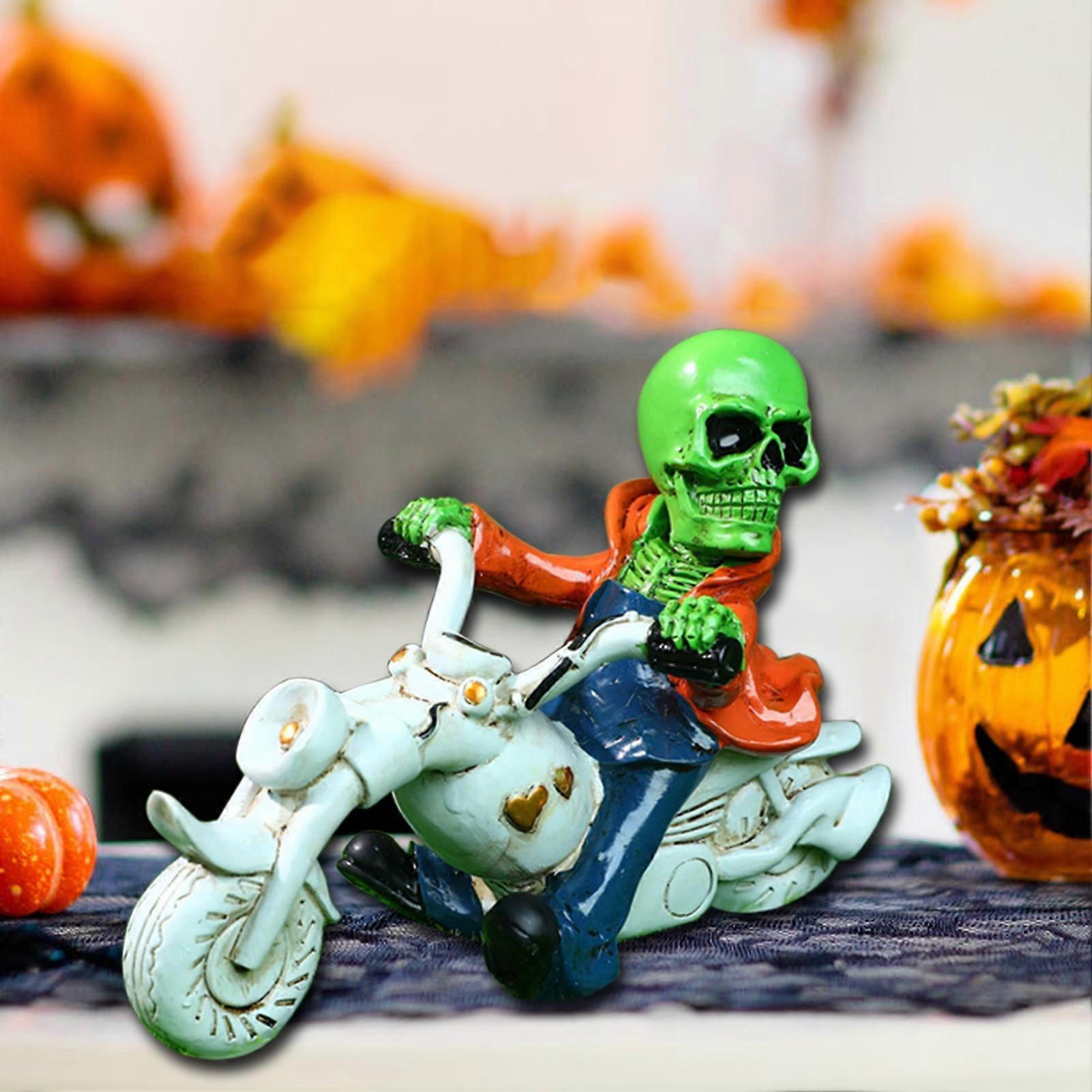 SUSUchens Halloween Skeleton Figurine Resin Skull Motorcycle Statue Spooky Desktop Centerpiece for Halloween Thanksgiving Decoration White