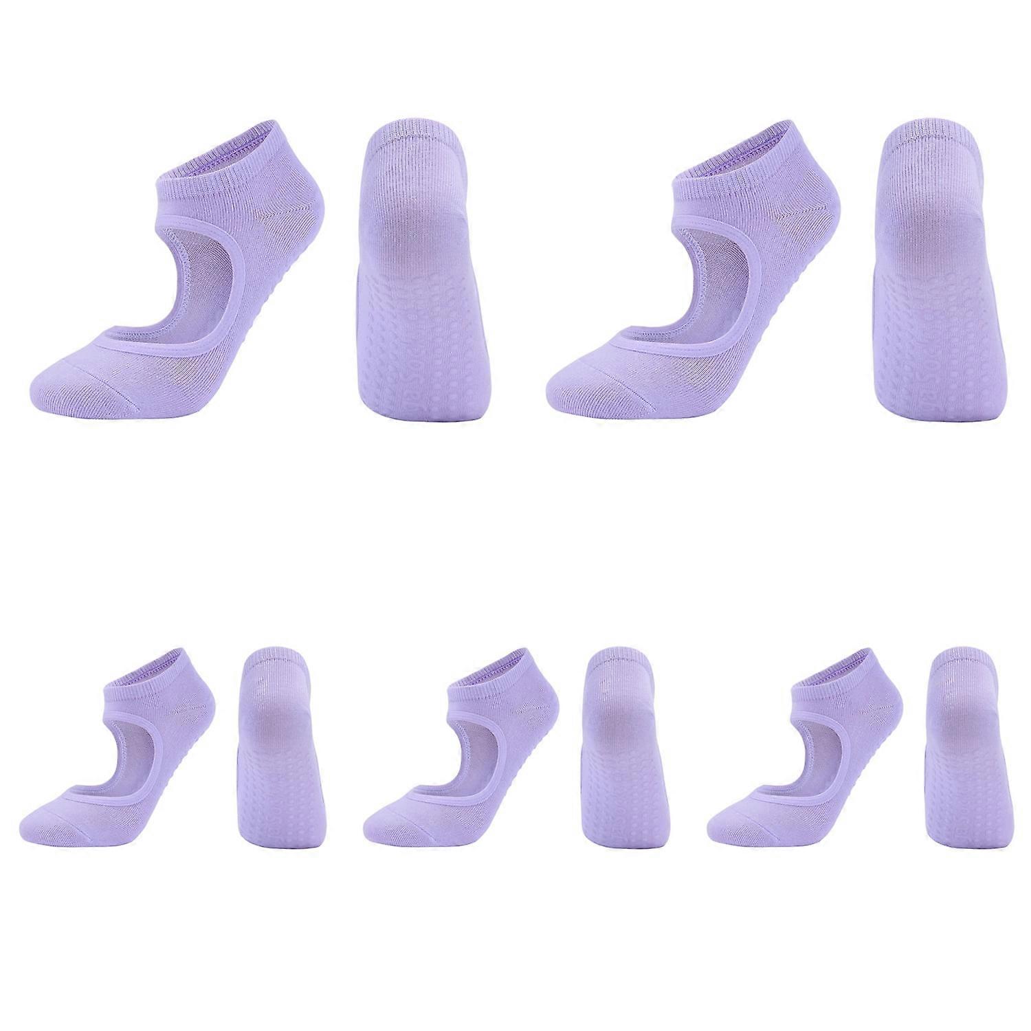 5Pairs Women High Quality Pilates Socks Anti-Slip Breathable Backless Yoga Ballet Dance Sports Socks for Fitness Gym,Purple