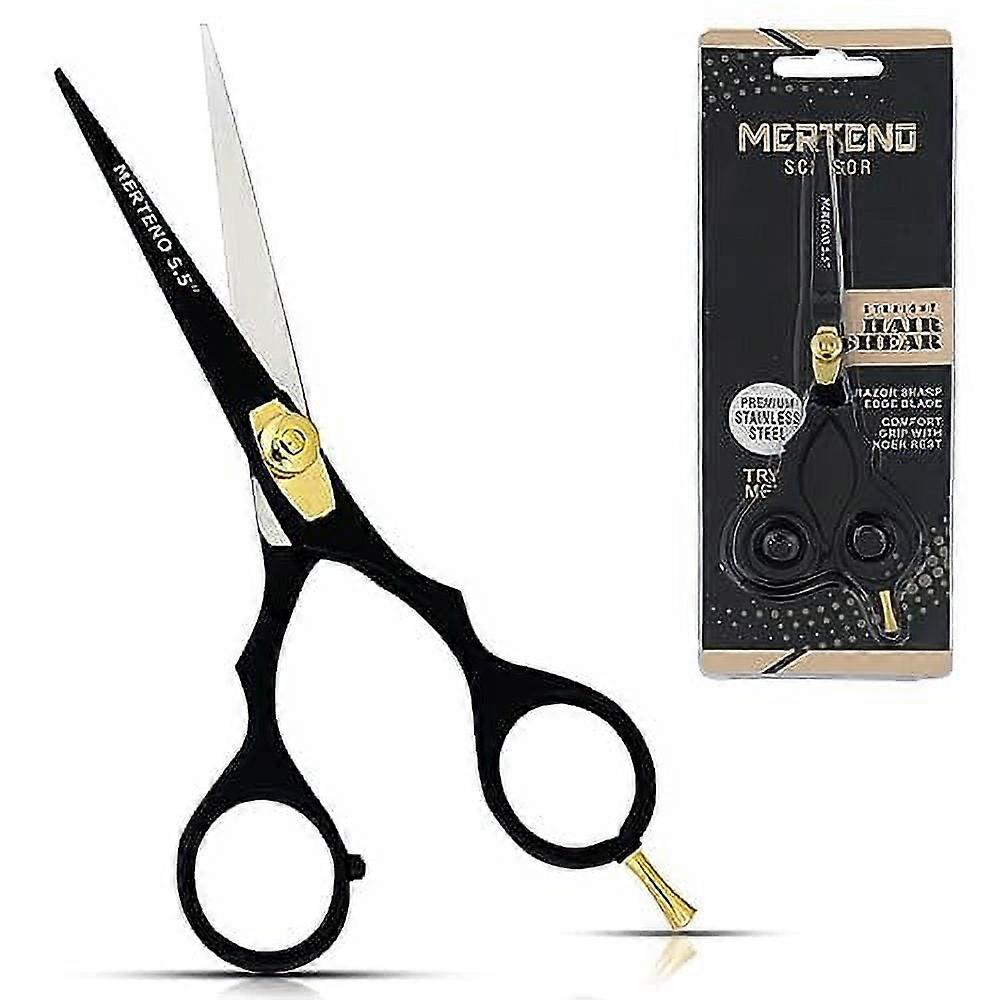 Professional 5.5" Hair Cutting Scissors compatible with Sharp Right-Hand Razor Edge, 420C Stainless Steel Barber Shears for Men & Women (Black/Gold)
