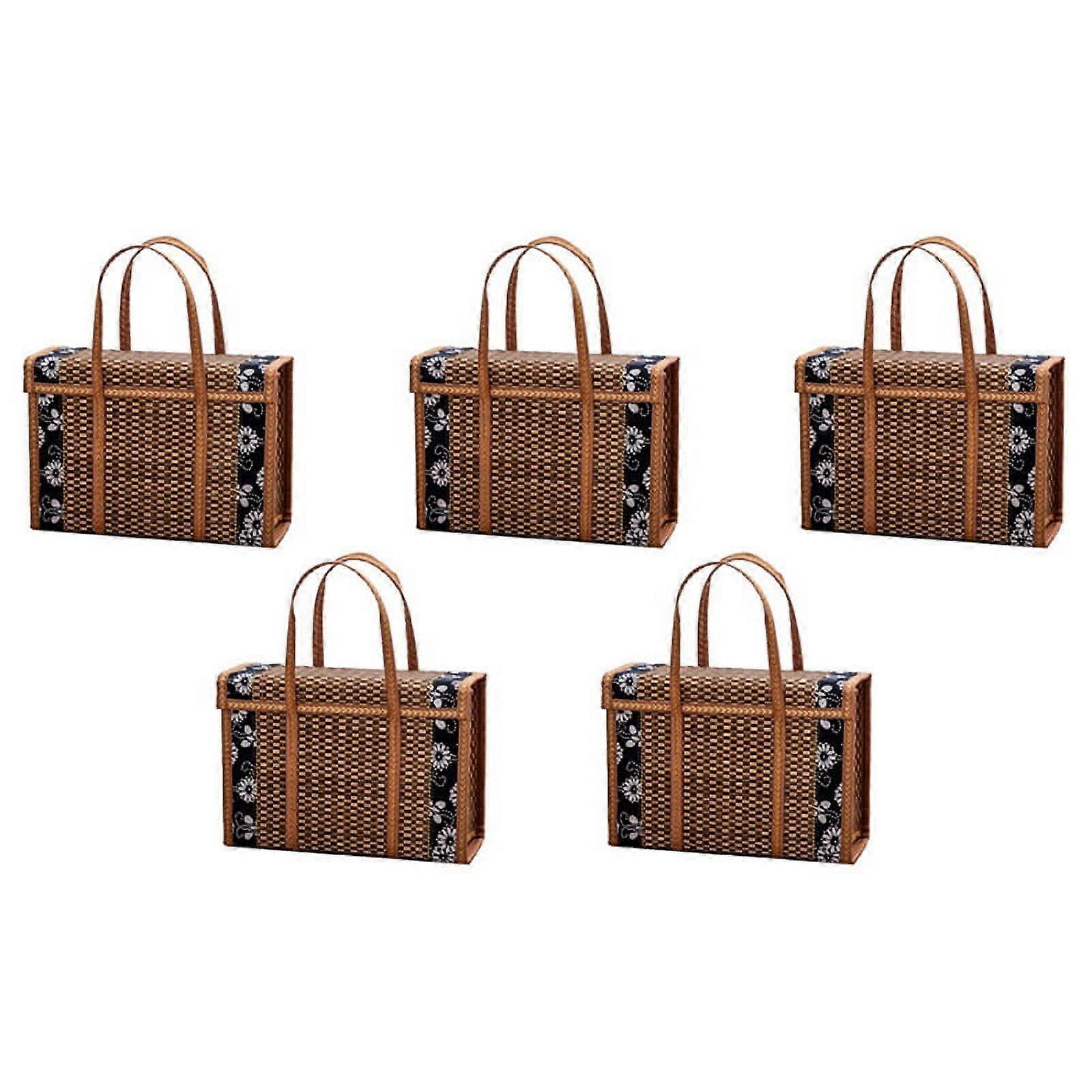 5X Picnic Woven Basket Wicker Storage Bag Handle Folded Fruit Shopping Food Handle Rattan Grass Foldable Bamboo Basket