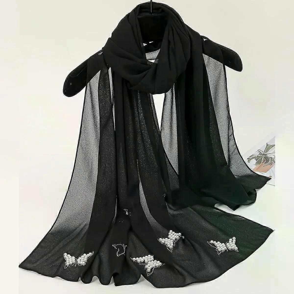 Bubble Chiffon Scarf Hijab Women Plain Shawls Beaded Pearl Hijab Muslim Woman Shawls For Veils Hijab Accessoires Ramadan