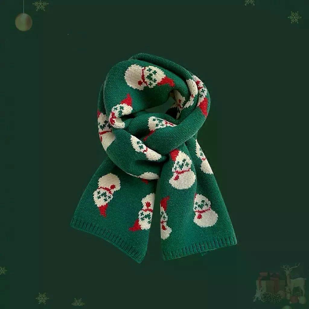 Christmas Thick Knitted Scarf Women's Winter Warm Neck Warmer New Year Red Scarf Student Christmas Snowman Festival