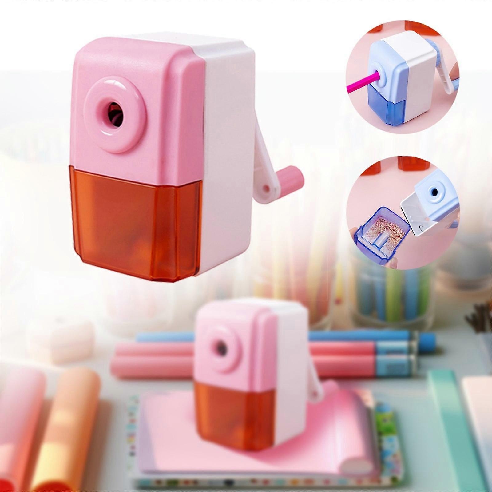 XIUH Manual Pencil Polishing Machine, Desktop Handheld Sharpener for Kids, School Stationery Supplies - Pink, compatible with standard pencils