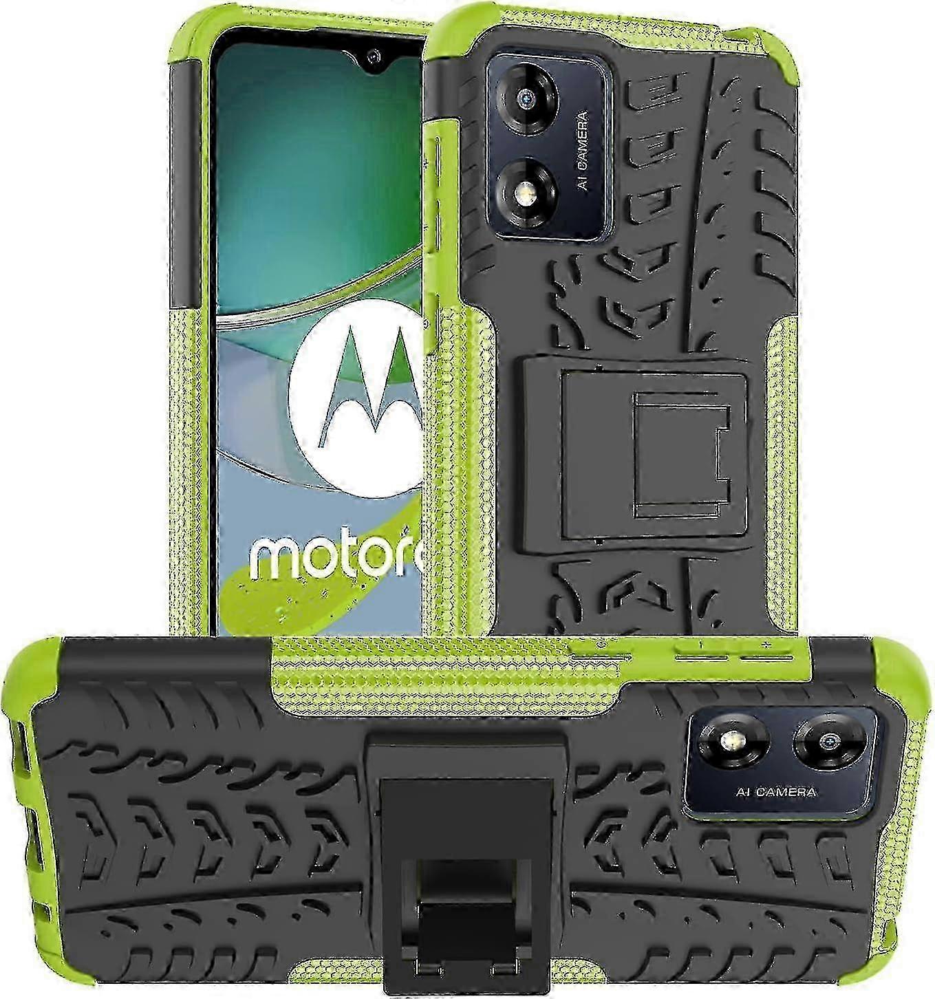 25-26 Hybrid Motorola Moto E13 Case - Heavy Duty Shockproof & Kickstand Cover (Lime)