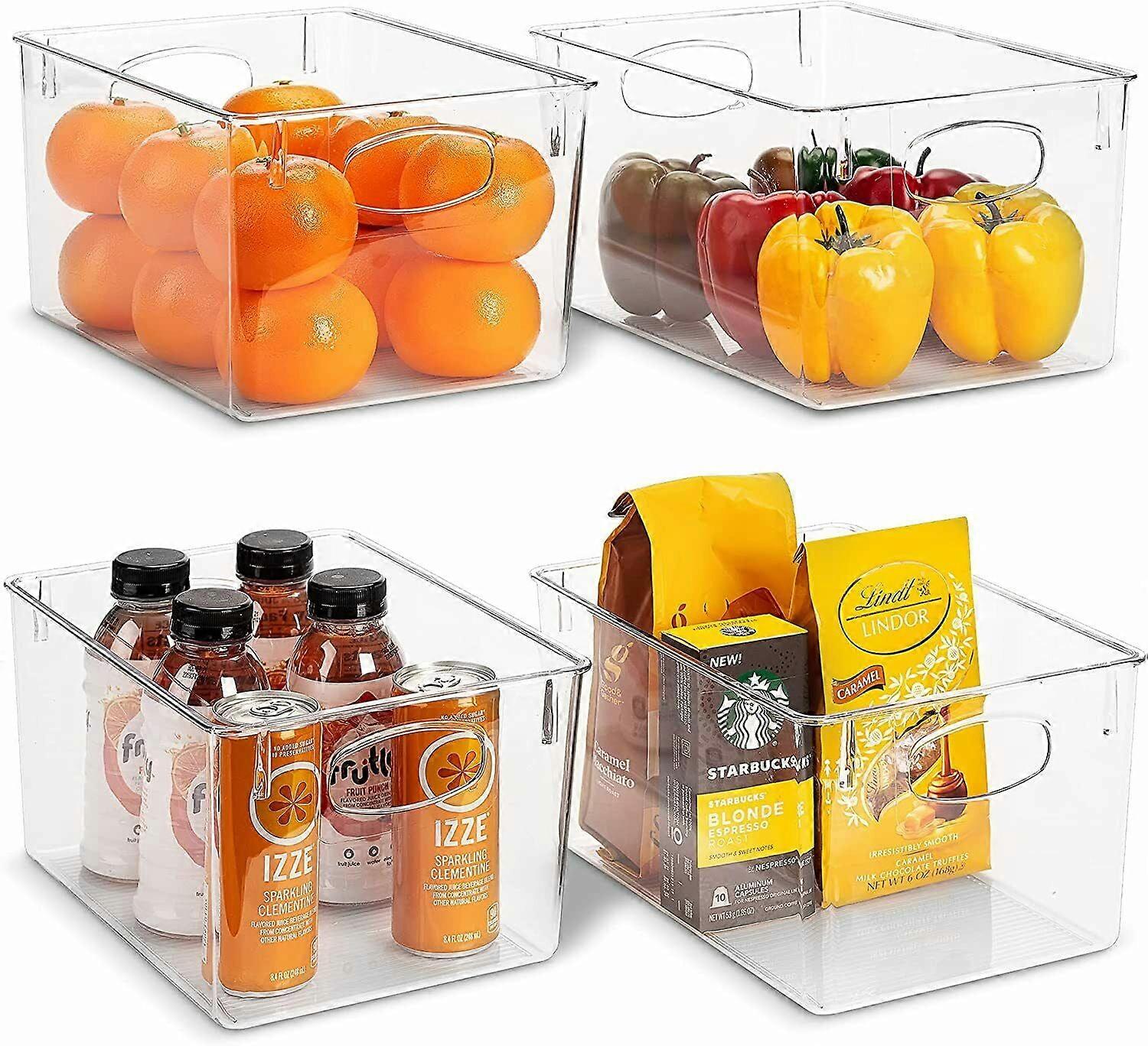 Clear Plastic Organizer Storage Bin Containers for Pantry Food & Kitchen Fridge