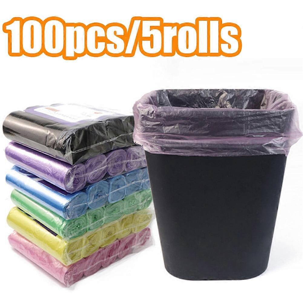 Travelwant 5 Rolls/100Pcs Strong Trash Bags, Colorful Clear Garbage Bags Compatible with Bathroom Trash Can Bin Liners, Small Plastic Bags for Home