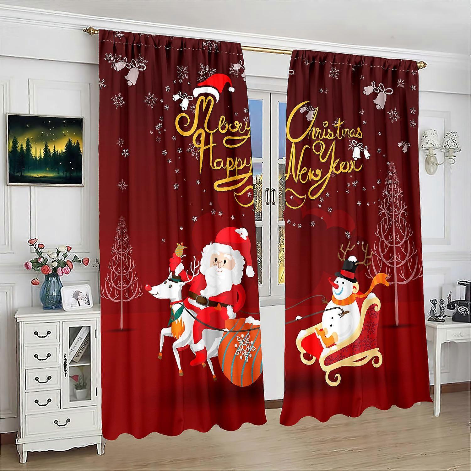 2 pieces of Santa Claus sleigh car printing curtain - polyester material - suitable for bedroom living room study room priva