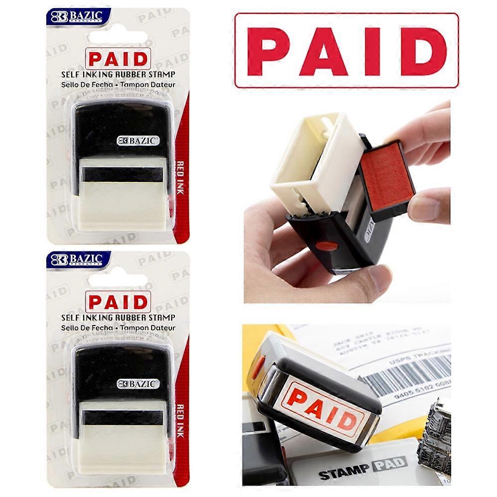 2Pc PAID Pre-Inked Rubber Stamp Red Ink Phrase Business Office Store Self Inking