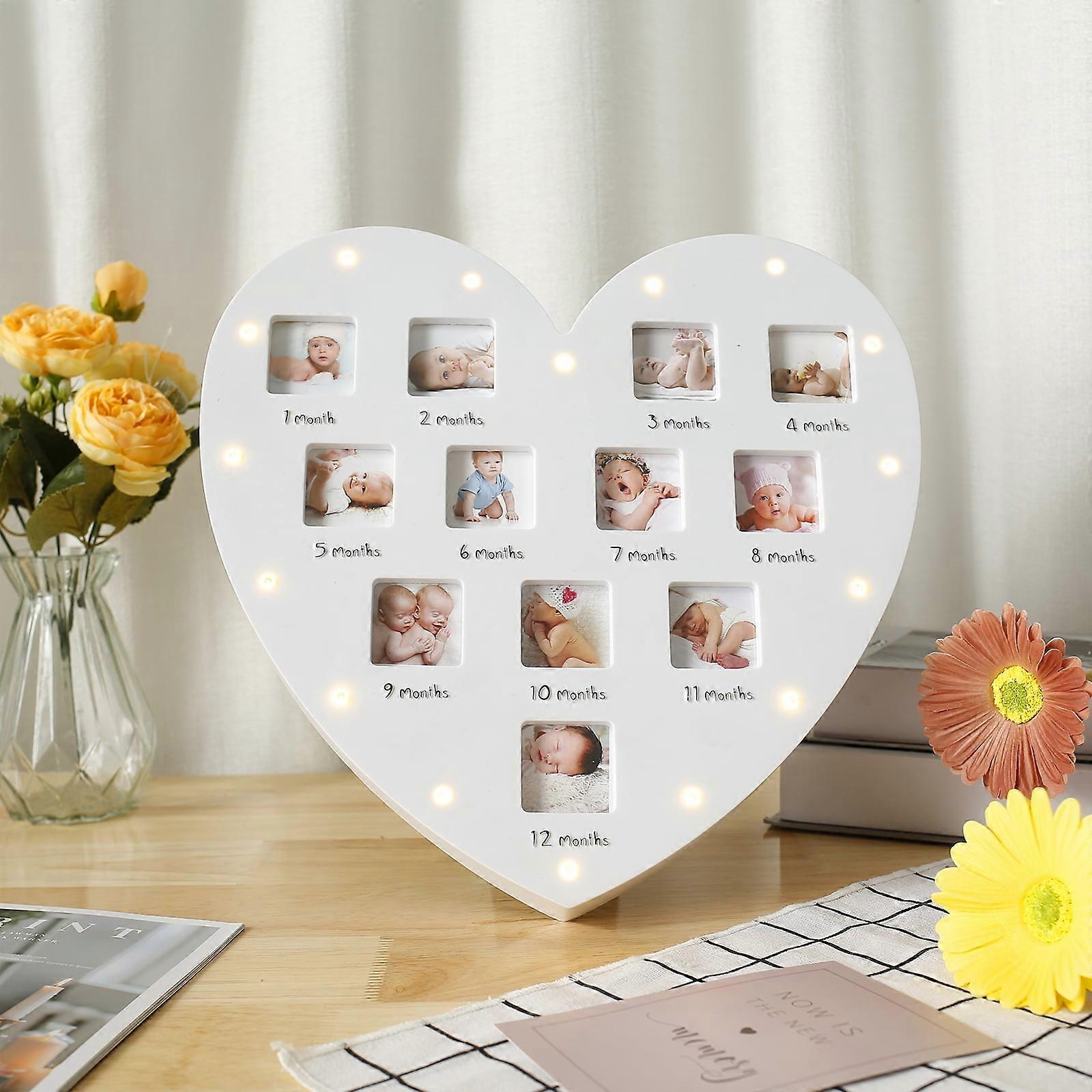 Qenwkxz Baby Picture Frame with LED Light, Battery Powered, Holds 12 Photos 1.6x1.6in, compatible with First Year Milestone, Nursery Decor
