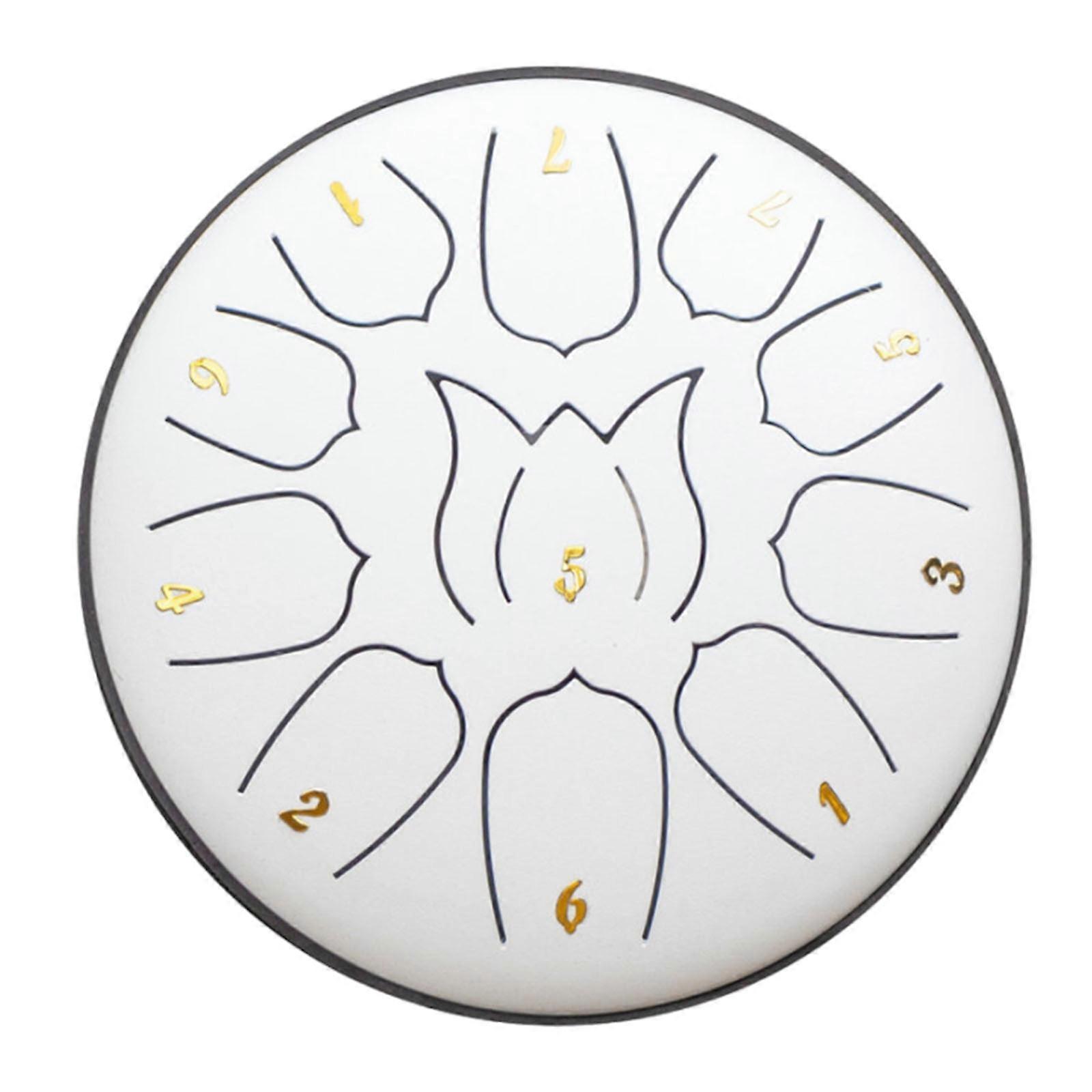 Steel Tongue Drum 6" 11 Notes with Bag, Sticks, Music Book - Healing, Meditation, Yoga, Education Instrument (Moonlight White)