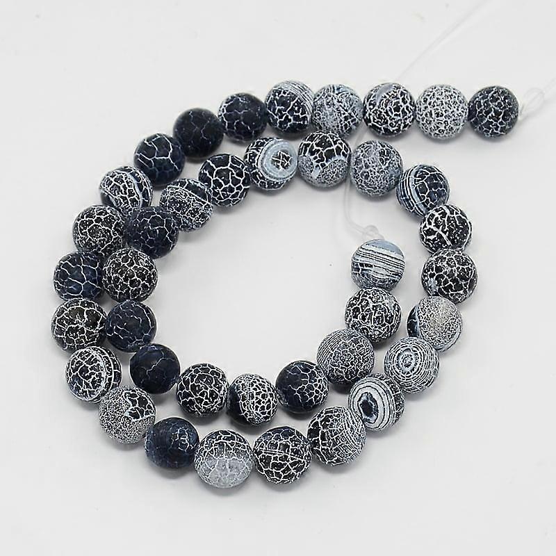 Natural Weathered Agate/Crackle Agate Beads Strands, Round, Grade A, Dyed, Black Size: about 8mm in diameter, hole: 1mm, about 50pcs/strand, 16 inch. Spiritual Properties of Agate: Agate is believed to promote stability, balance, and clarity in all aspects of life. This includes emotional and physical balance.Its energy balancing properties help to regulate the flow of energy throughout the body, promoting overall health and well-being. It is often used in meditation and other spiritual practices, as it can help to calm the mind and promote inner peace. ※Please note that there is no specific scientific evidence to prove the therapeutic effects of stones, but gemstone therapy meditation may induce a placebo effect that helps you relax the mind. Priced per 1 Strand Material: Natural Weathered Agate Color: Black Shape: Round Usage: Beads Package Size: 1 Strand per package