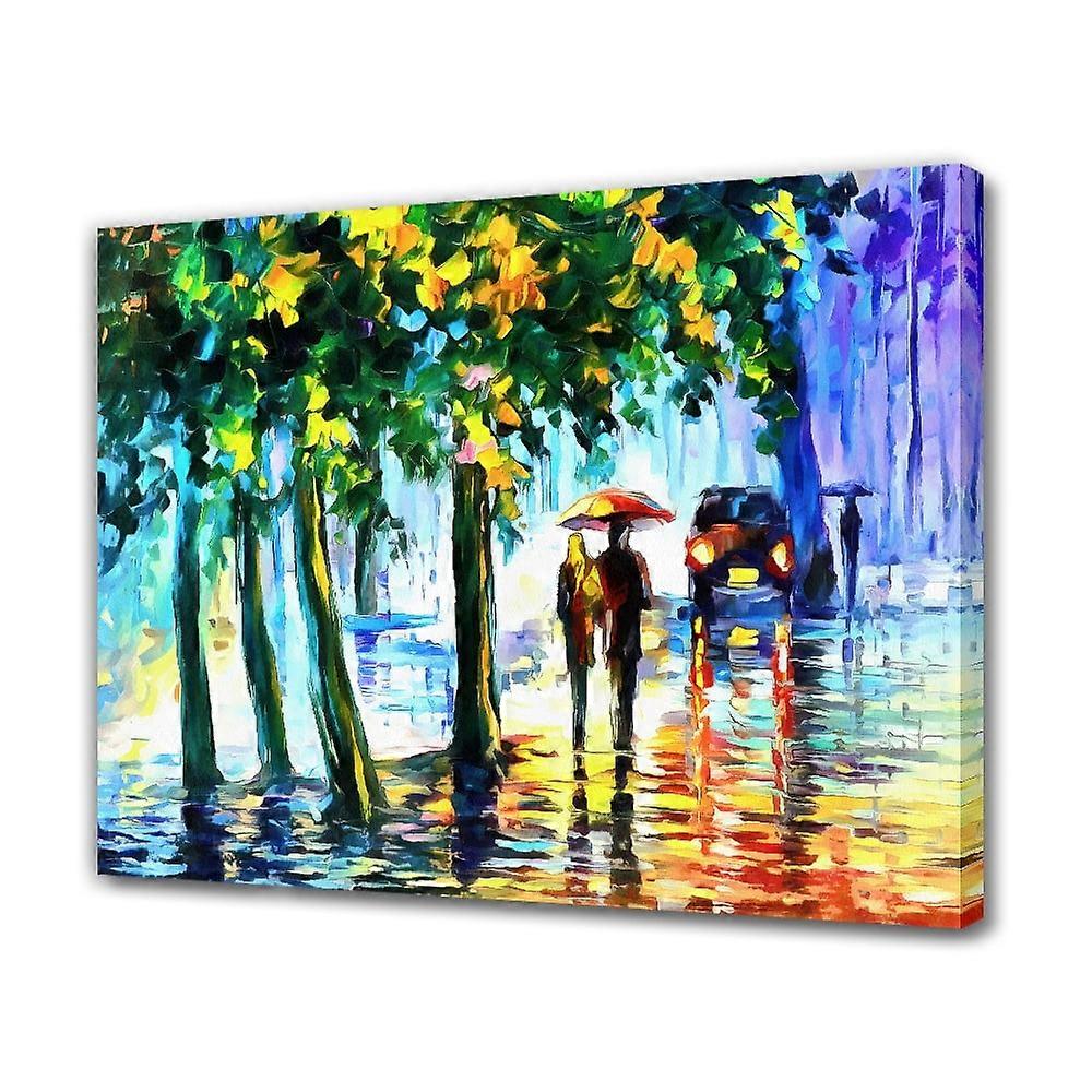 Loving Couple Under Umbrella In Rain Canvas Poster Bedroom Decor Sports Landscape Office Room Decor Gift,Frame-style,16x24inch(40x60cm)