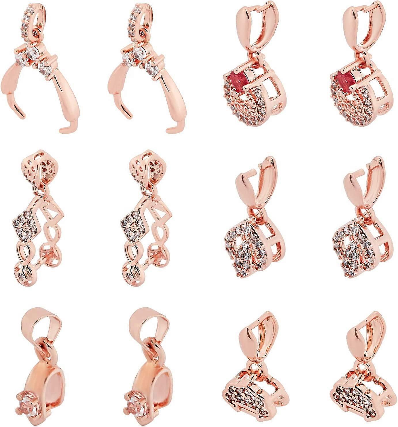 12Pcs Rose Gold Pinch Bails, 6 Style Rhinestone Ice Pick Clips, Micro Pave Cubic Zirconia Pinch Clips for Jewelry Making