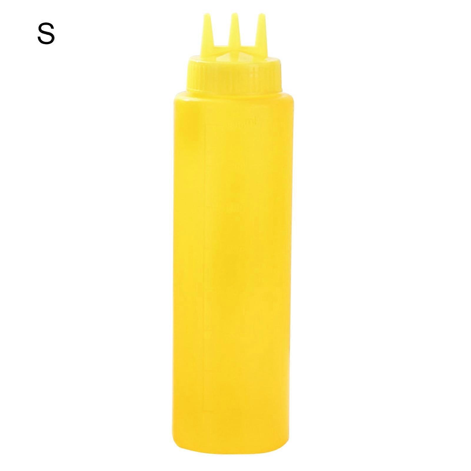 Farfi Refillable Squeeze Bottle Food Grade 3 Hole Large Capacity Condiment Bottles for Kitchen (Yellow,S)