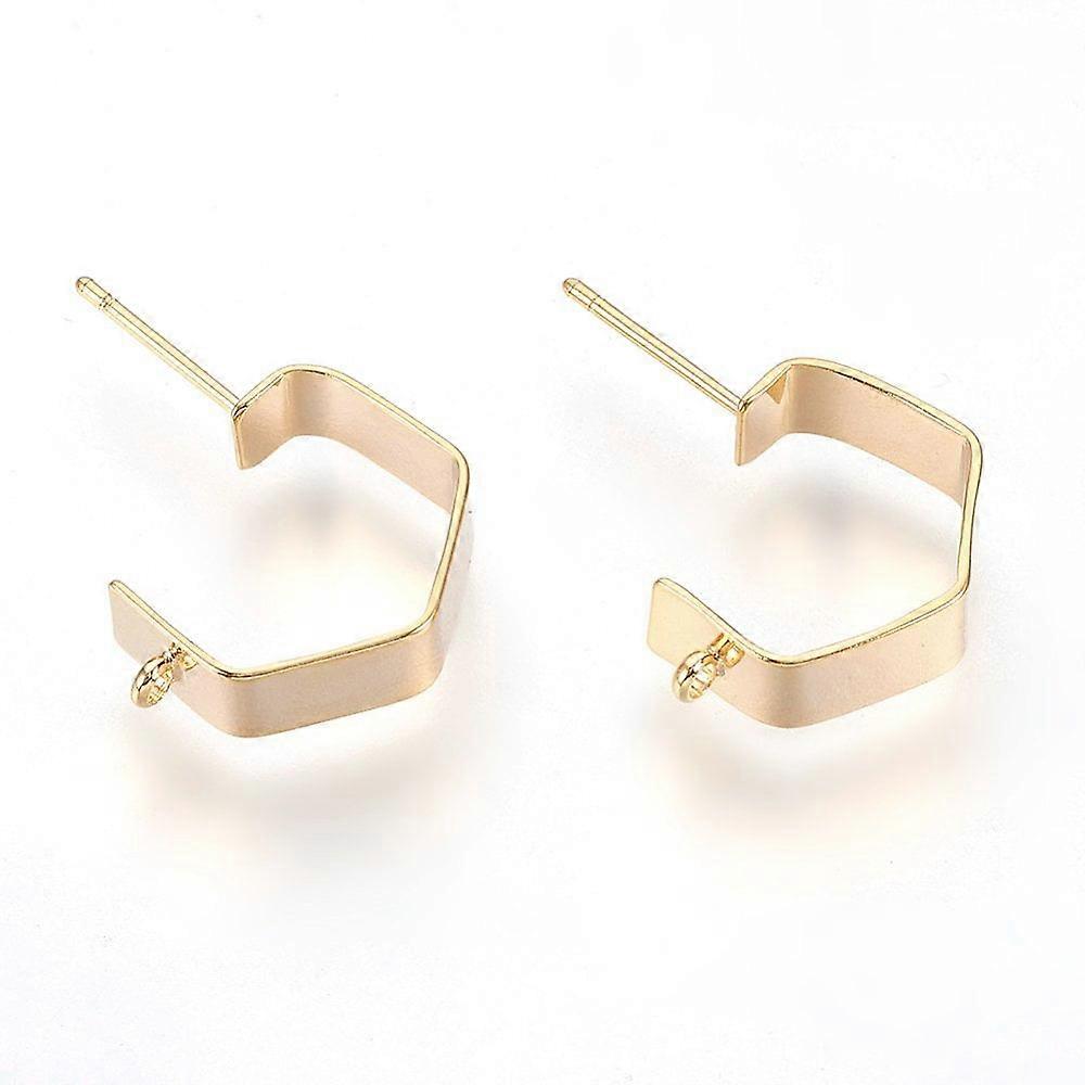 2pc Brass Ear Stud Findings with Loop Nickel Free Real 18K Gold Plated 17x5mm Hole: 1mm Pin: 1mm