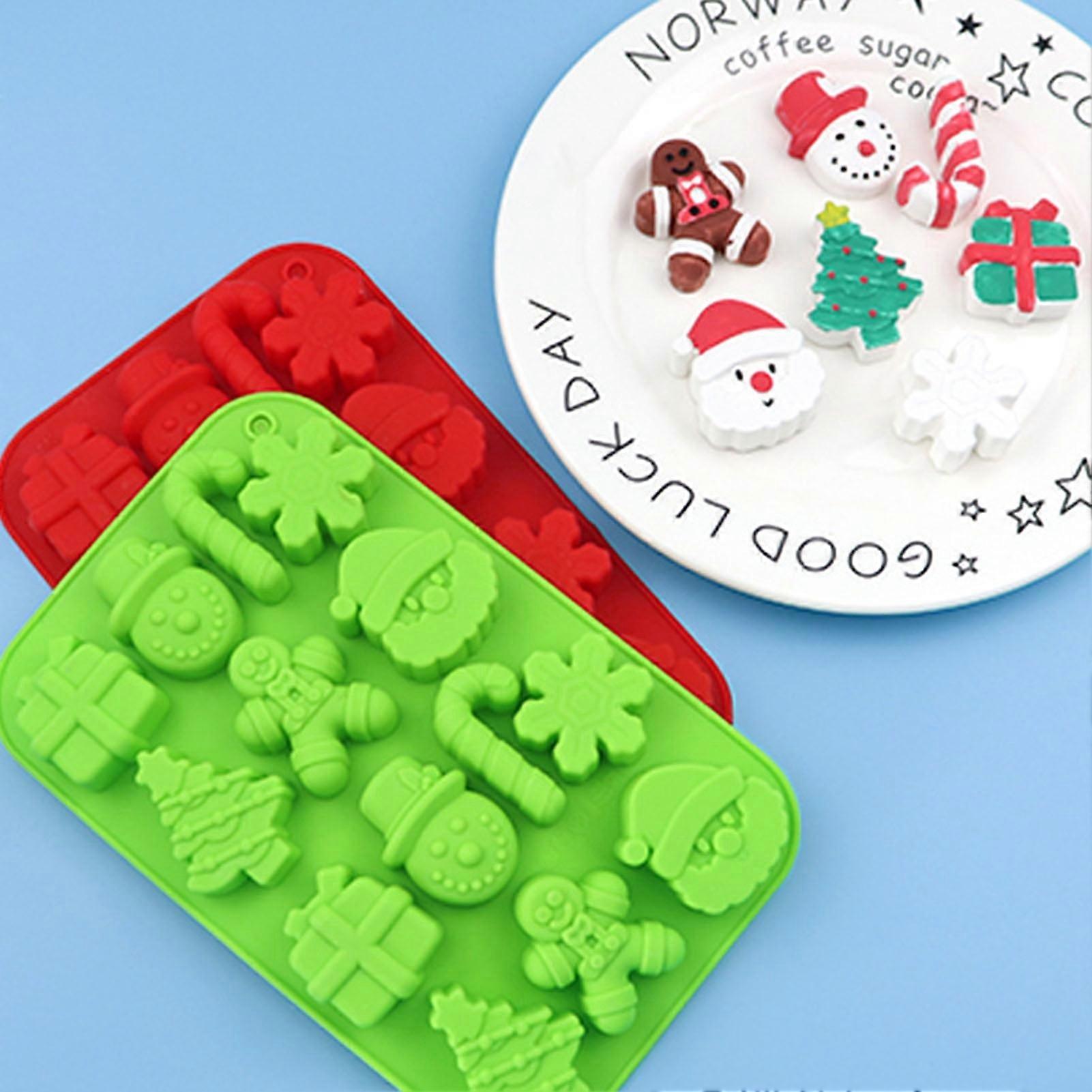 Christmas Silicone Mold 14 Cavities, Santa Snowman Tree Cane Gift Box, Non-stick Food Grade, Easy Release for DIY Fondant, Chocolate, Candy,