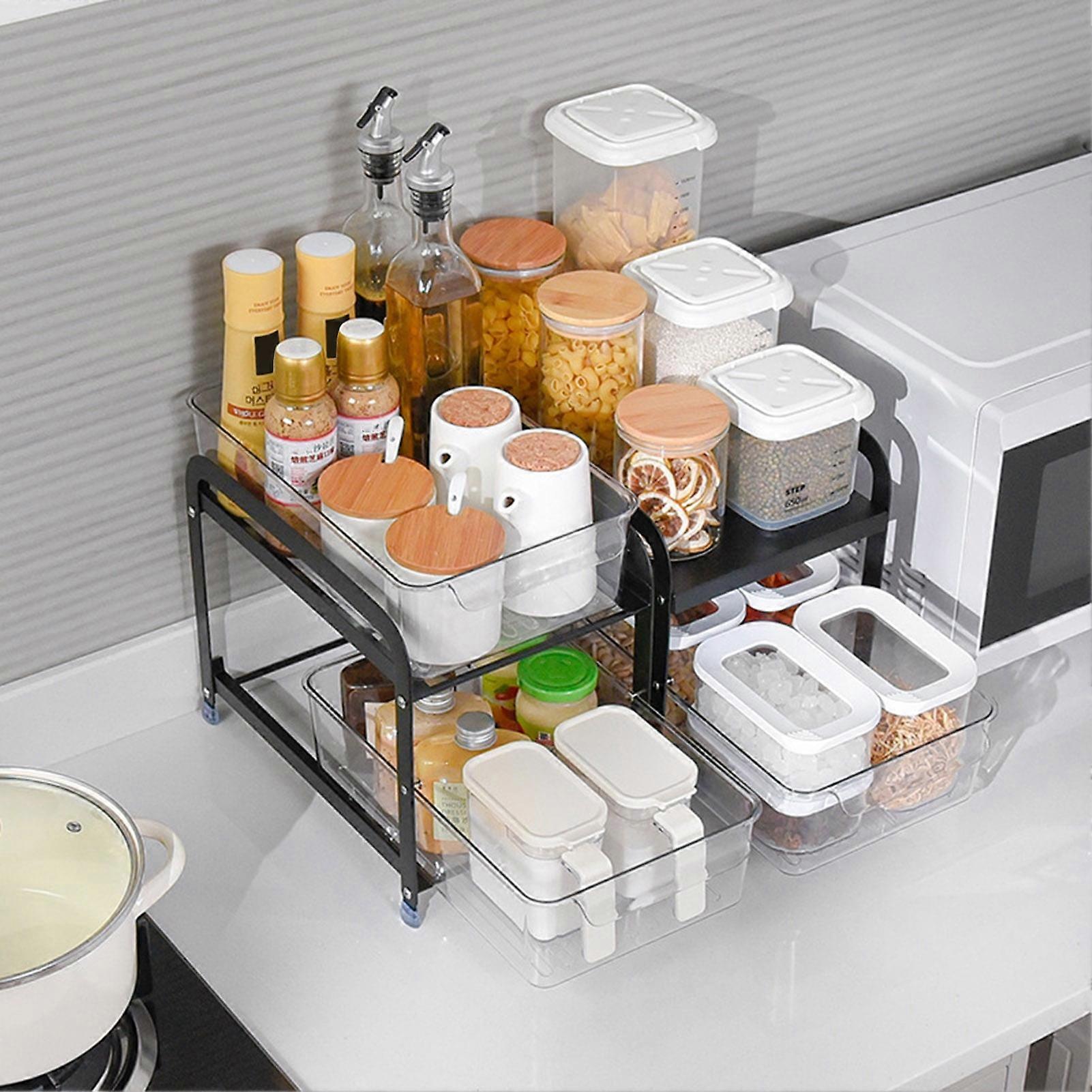 SUSUchens Under-sink Organizer Storage Rack Double Layer Large Capacity Strong Load-bearing Easy to Install Bathroom Kitchen Rack Shelf White Size B