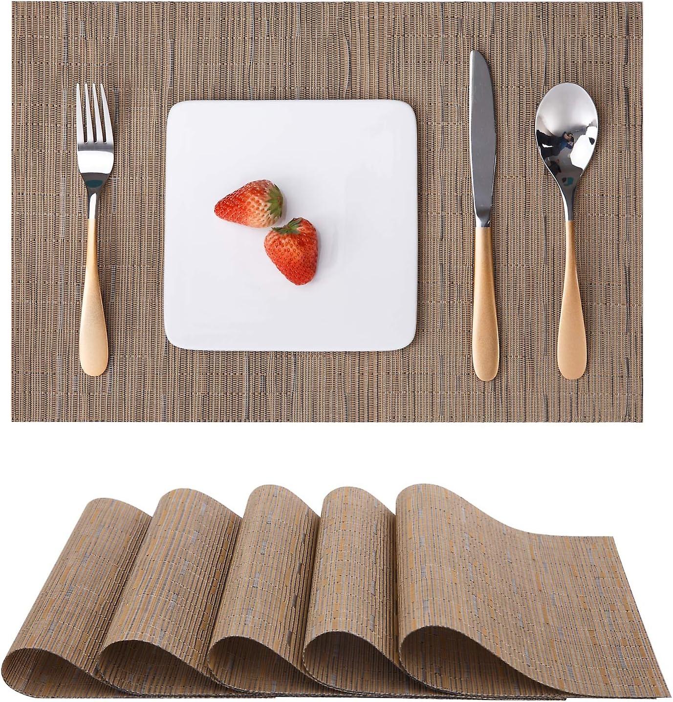Set of 6 Washable Placemats, Woven Placemats, Washable Non-Slip Heat Resistant Wear Resistant Washable Vinyl Placemats30x45cm Placemats (Brown)