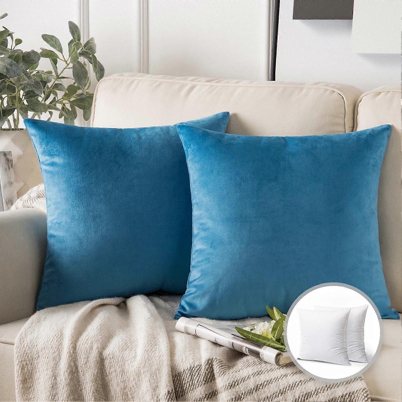Phantoscope Soft Silky Velvet Series Square Decorative Throw Pillow Cusion for Couch, 18" x 18", Sky Blue, 2 Pack