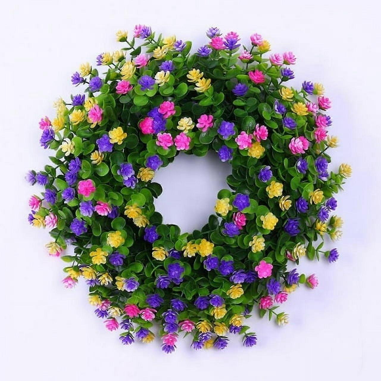 15.75in Artificial Flower Wreath, Colorful Spring Summer Floral Garland for Door, Wall, Wedding, Party Decor, Indoor & Outdoor Use