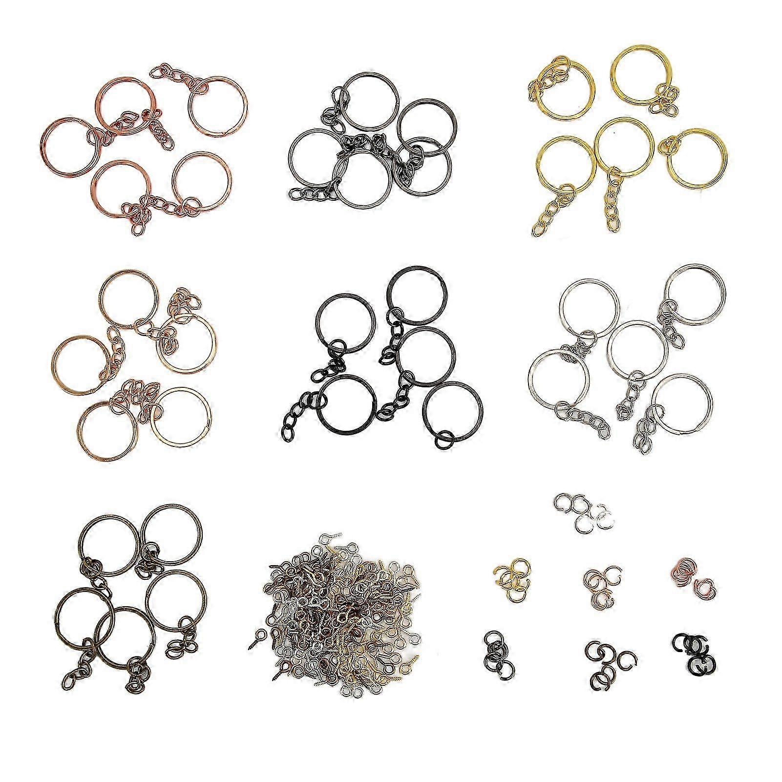 25-26 250pcs Key Chain Rings Kit Including 35 Keychain Rings with Chain 35 Jump Rings 180 Screw Eye Pins for Jewelry Making