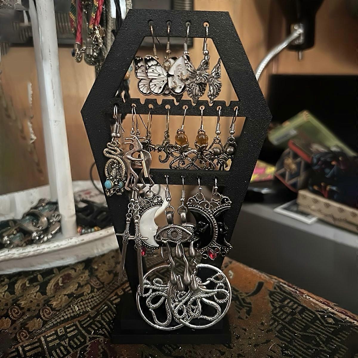 Gothic Style Tombstone Earring Display Stand Vintage Creative for Halloween Organizer Jewelry Office Home Holiday Gifts