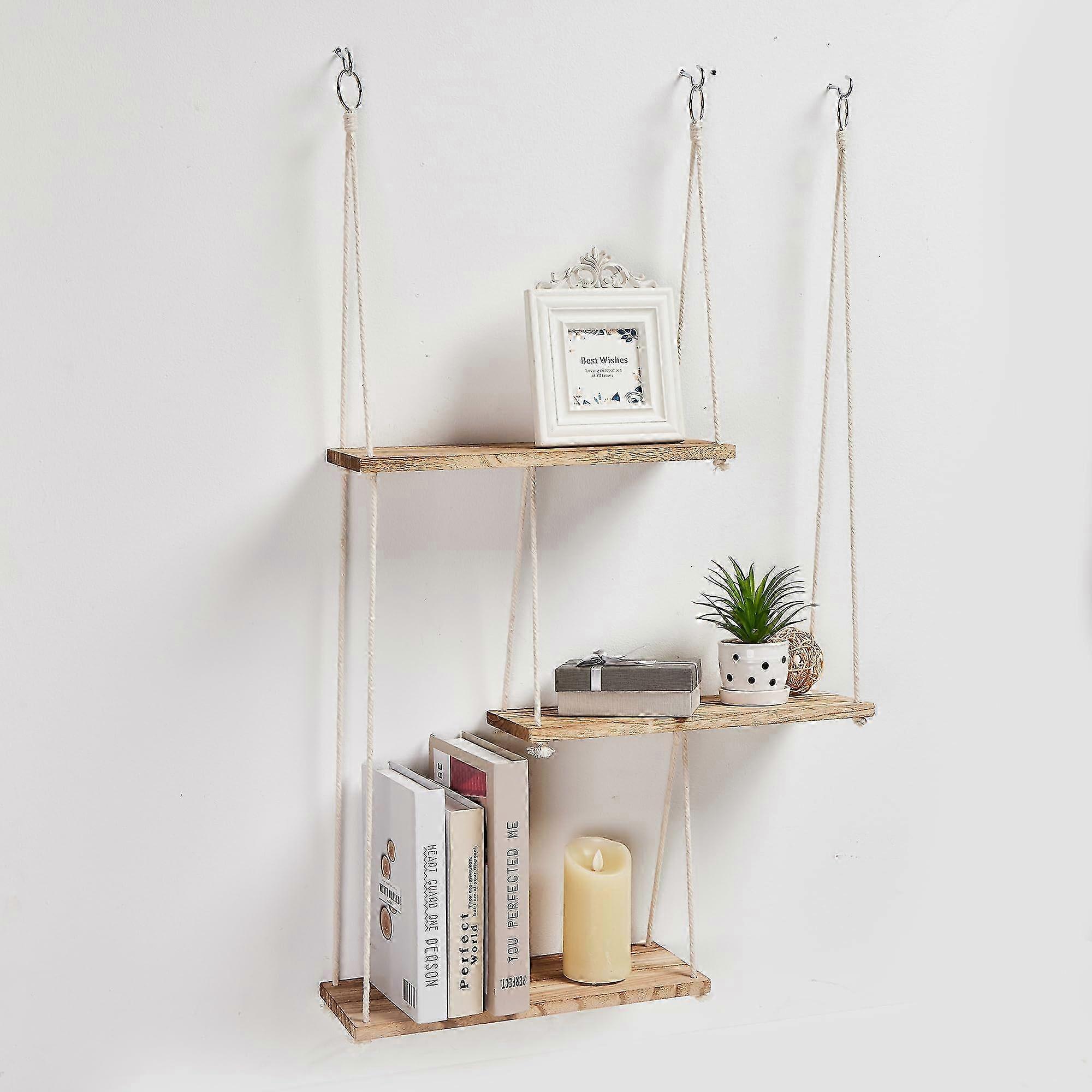 [ Home Décor Accent] - Elevate your home décor with our stylish floating shelves. They provide a beautiful and practical way to display collectibles, photos, books, and plants, making them ideal for bedrooms, living rooms, bathrooms, kitchens, nurseries, dorm rooms, and offices. Versatile enough to complement various décor styles including farmhouse, southwestern, bohemian, modern, rustic, and minimalist, these shelves add a touch of charm to any space.. [Functional Storage Solution] - Create additional shelf space to neatly store and organize items in your bedroom, bathroom, or any room in your home. for stowing away unused belongings and showcasing plants, decorative items, and collectibles, these shelves help you adorn every nook and cranny of your living space!. [] - Install these shelves in minutes with ease, thanks to our user- design and simple installation process. Always, you'll find it quite easy to complete the installation work all by yourself.. [Product Specifications] - This package includes 3 sturdy paulownia boards, 3 expansion plugs, and 3 screw hooks. Each shelf measures 16 by 6 inches. With a total height of 36 inches, our shelves can securely hold up to 30 lbs when properly installed on the wall. Note: Due to the light and screen setting difference, the item's color may be slightly different from the pictures. Please allow slight dimension difference due to different manual measurement.
