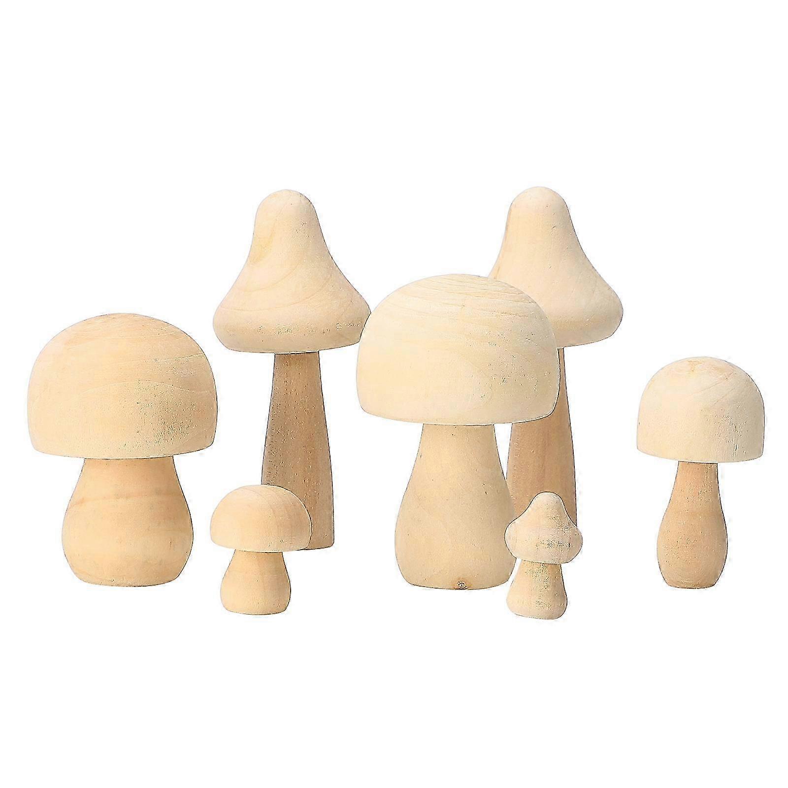 25-26 Unfinished Wooden Mushroom Art DIY Craft Painting Home Decor 7 Pcs Ornaments