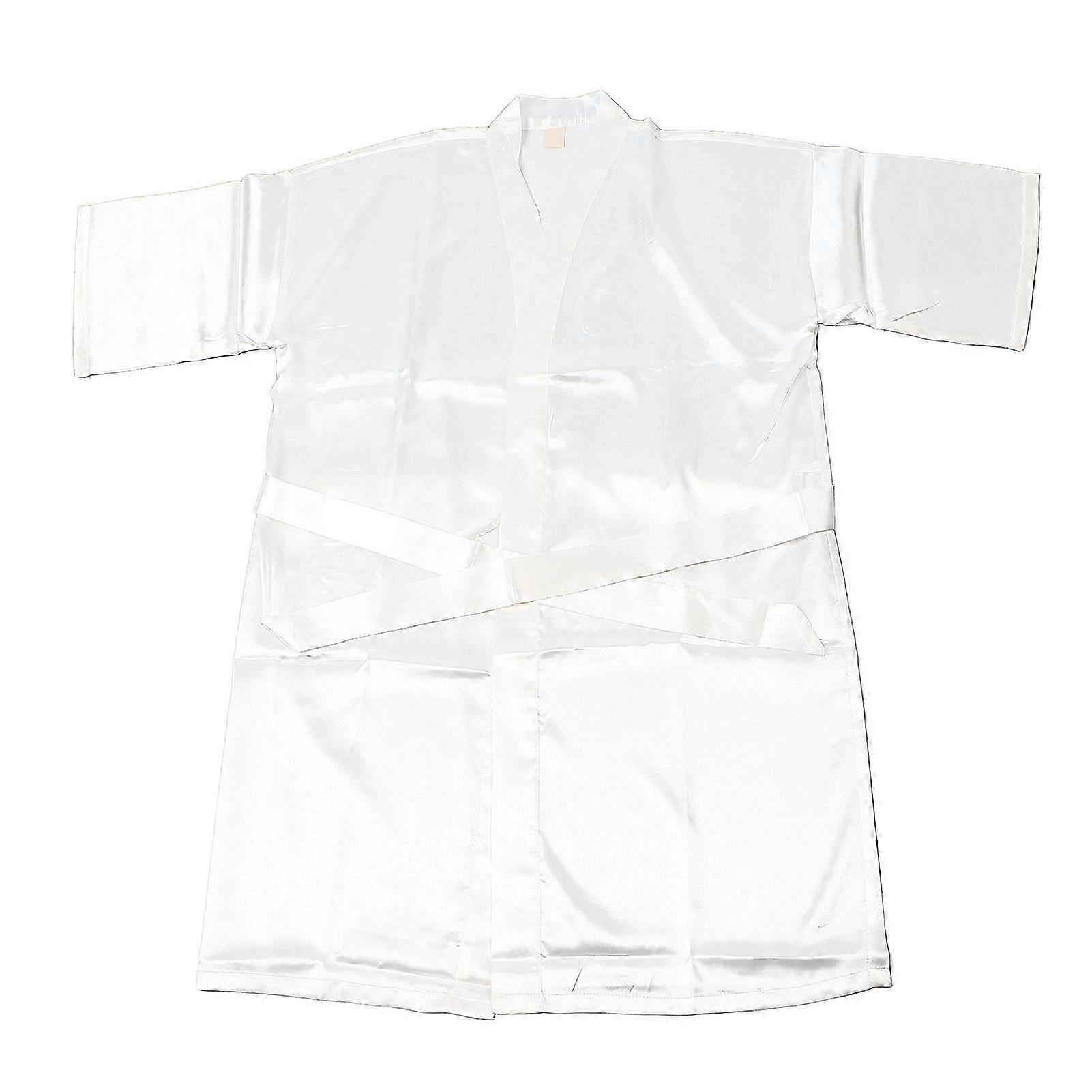 25-26 Women Satin Bathrobe V Neck Tie Waist Plain Color Elegant Loose Fit Robe Pajama Sleepwear