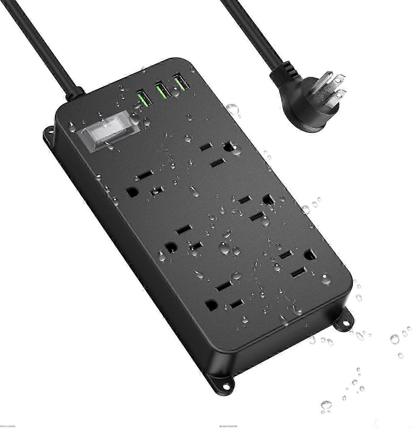 25-26 Weatherproof Outdoor Power Strip with USB, 6 Outlets & 3 USB Ports, Waterproof Surge Protector, 6FT Cord, Flat Plug, Compatible with C