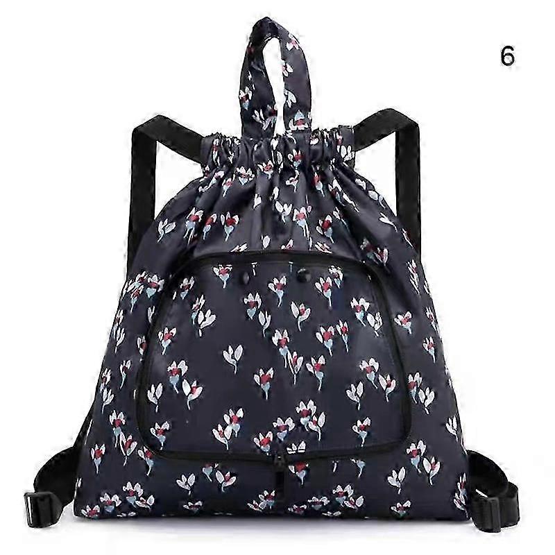 25-26 Multifunctional Foldable Portable Shopping Bag Women's Printed Drawstring Backpack for Camping Outdoor Activity