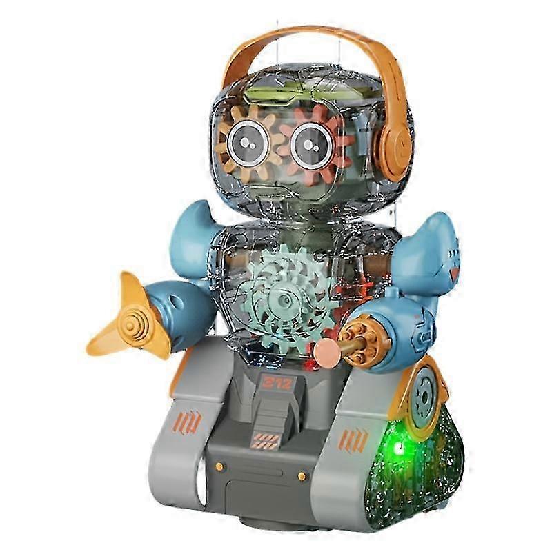 25-26 Childrens technology mecha boys electric universal robot transparent gear light music belt ejection toy gift