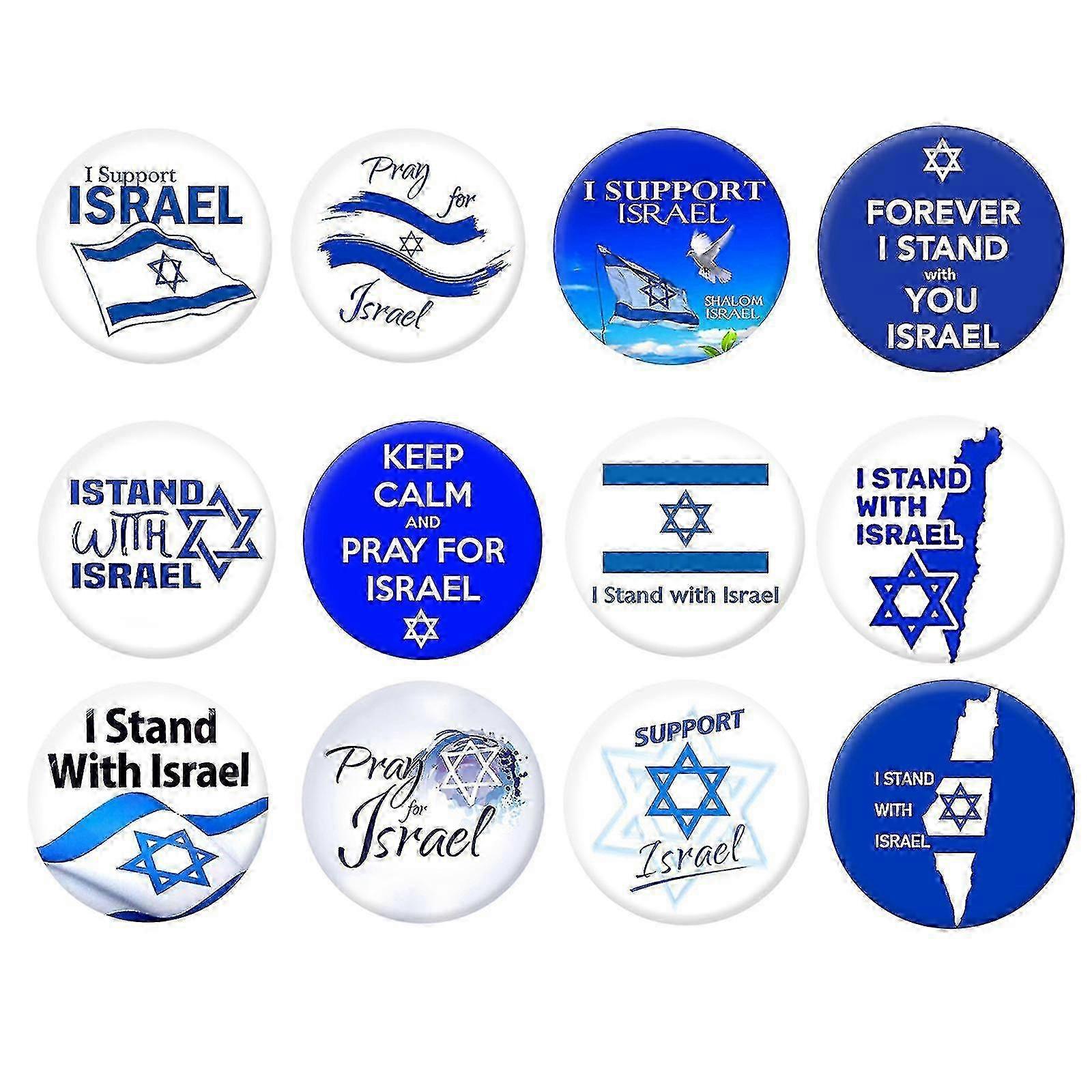 25-26 Israel Flag Brooch Pin, Metal Israel National Lapel Pin, Round Israel Enamel Brooches Hat Shirt Pin Metal Badge Accessories