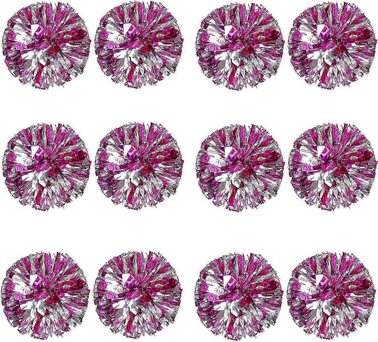 25-26 12Pcs Cheerleading Pom Poms for Kids, Metallic Foil & Plastic Ring Cheer Pom Poms for Boy